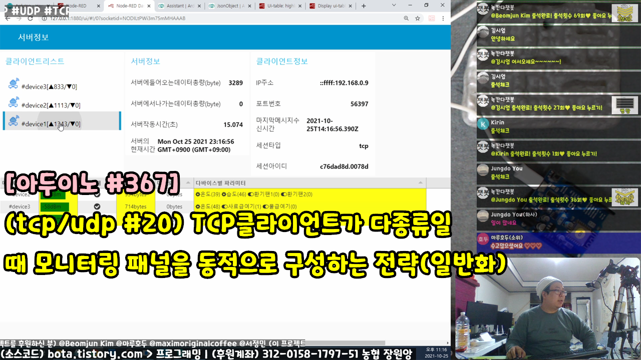 [아두이노#367] (tcp/udp #20) TCP클라이언트가 다종류일때 모니터링 패널을 동적으로 구성하는 전략(일반화)(녹칸다/포로리야공대가자)