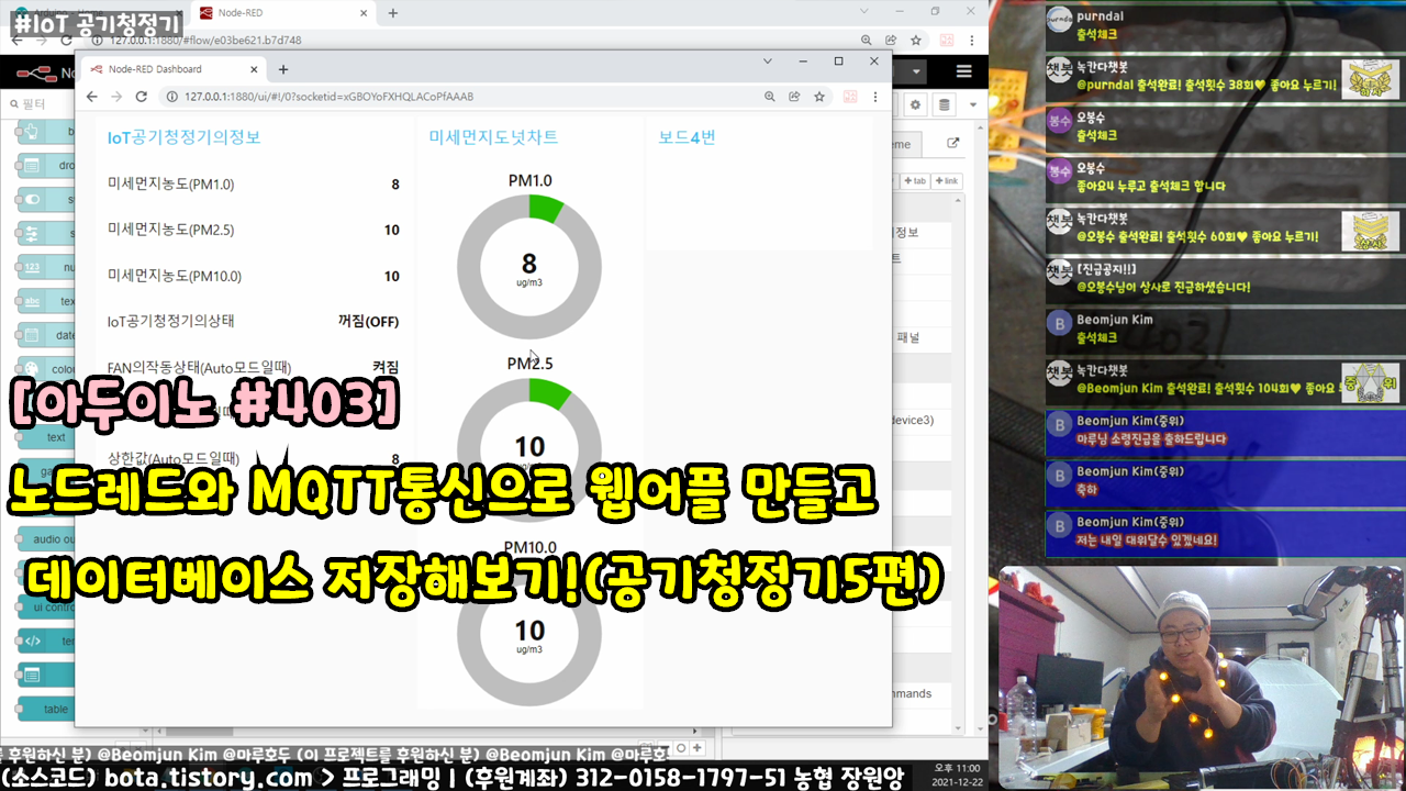 [아두이노#403] 노드레드(node-red)와 MQTT통신으로 웹어플 만들고 데이터베이스 저장해보기!(공기청정기5편)(녹칸다/포로리야공대가자)