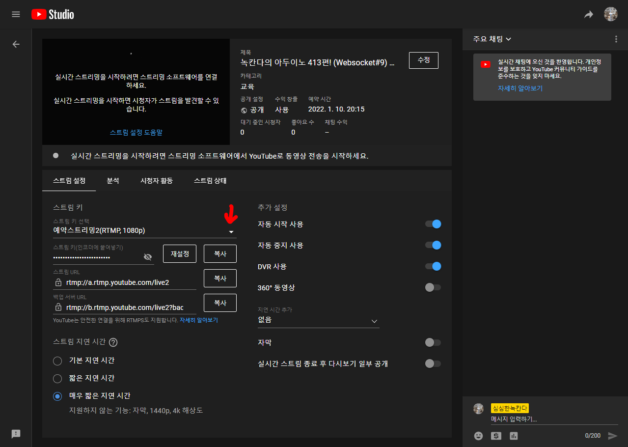 OBS보다는 유튜브 관제소쪽 설정이 더 중요한 것 같은데요~~!