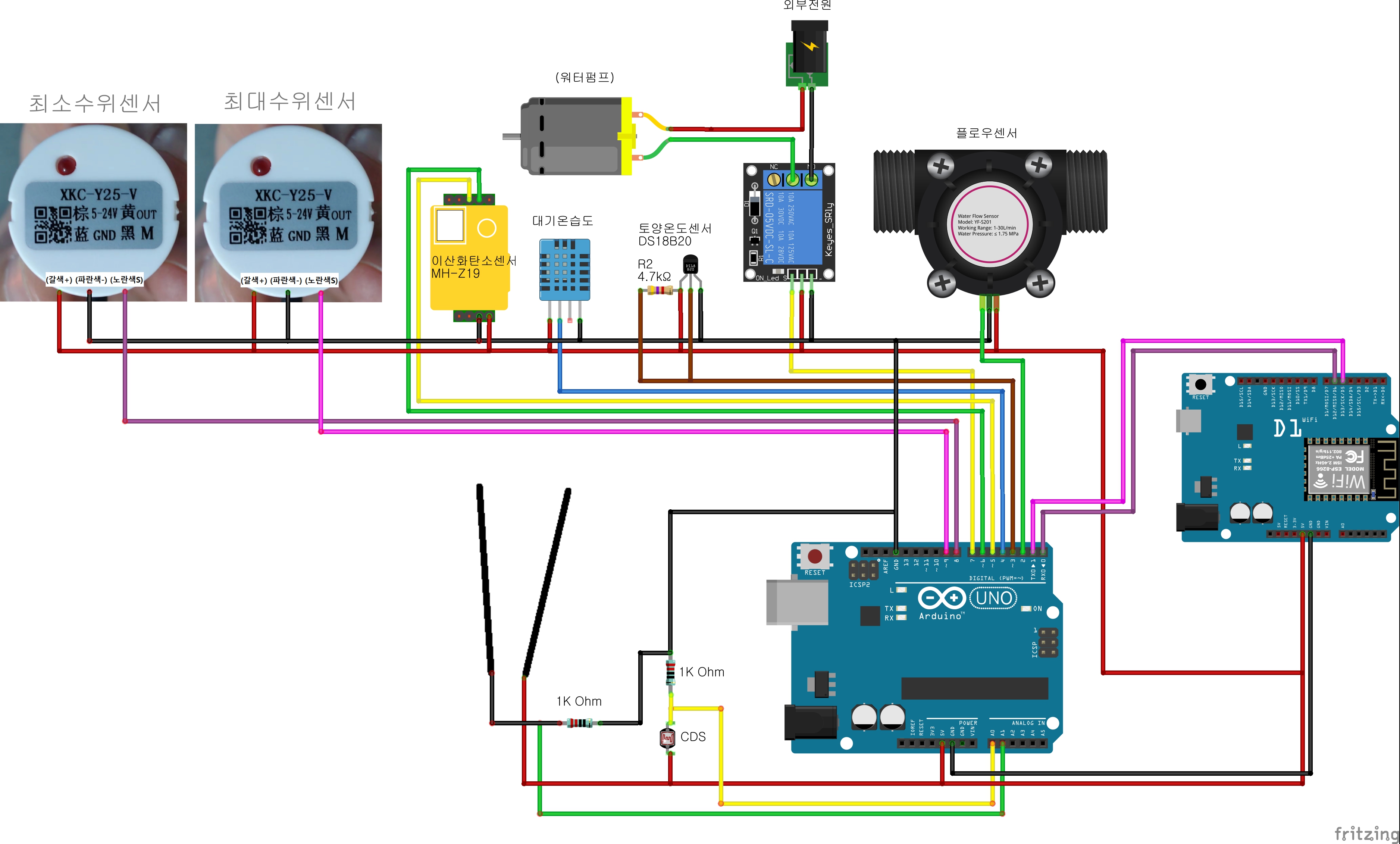 그리고 급수파트로 워터펌프와 유량센서 수위센서가 있다!