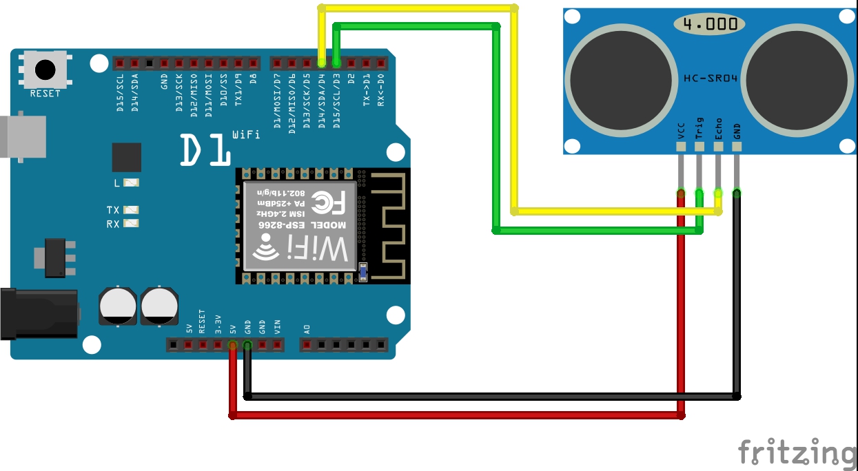 4.초음파센서(HC-SR04)를 Trig핀을 D3에 Echo핀을 D4에 연결해서 측정하시오!