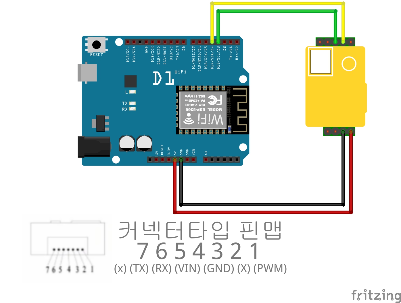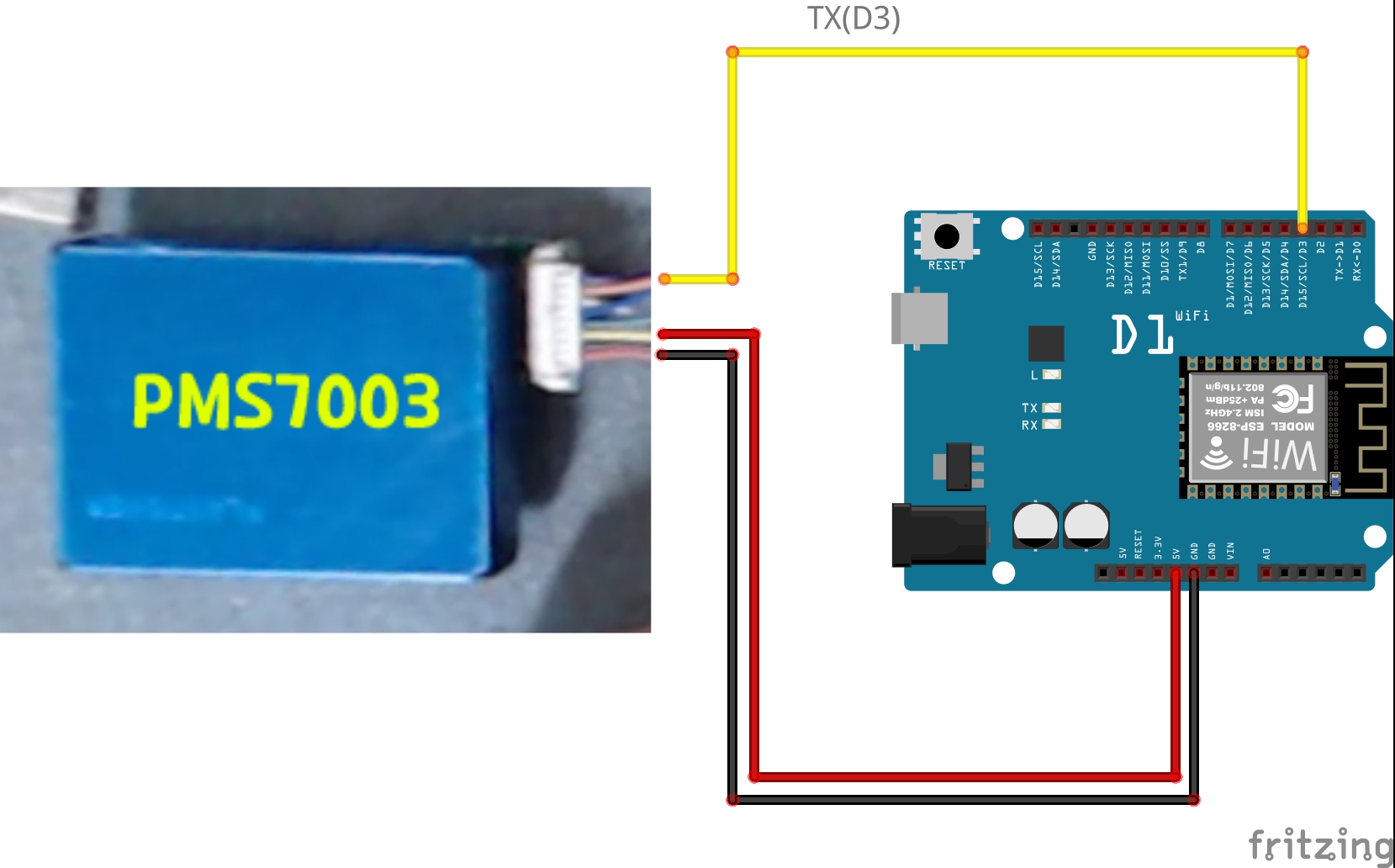 3.ESP8266에 미세먼지센서의 Tx핀만 D3에 연결하고 측정값을 전송하시오!