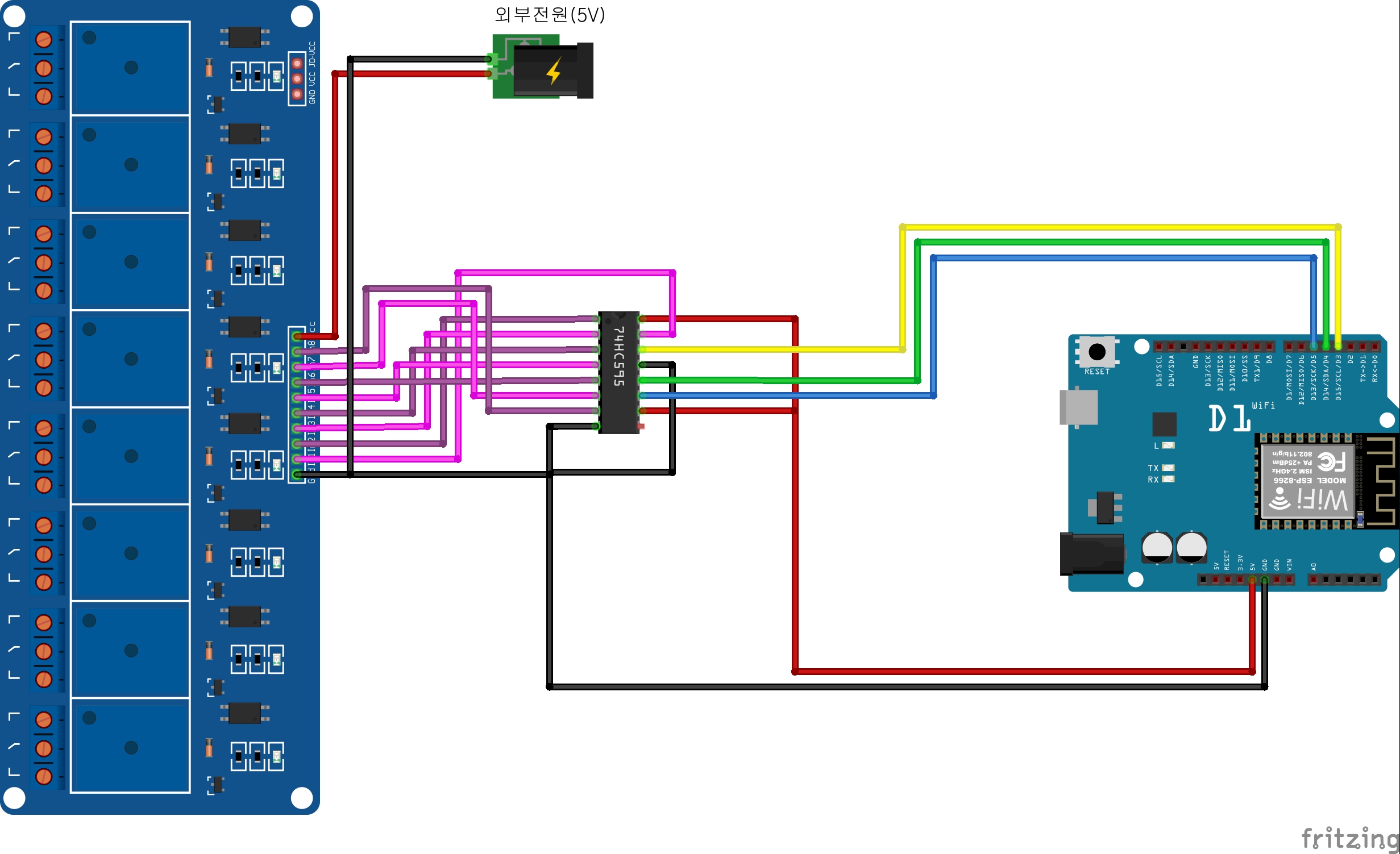 이번편에서는 ESP8266의 출력디지털핀의 갯수를 늘리기위해서 74HC595 쉬프트 레지스터를 이용해서 8채널 릴레이를 제어해보도록 한다!