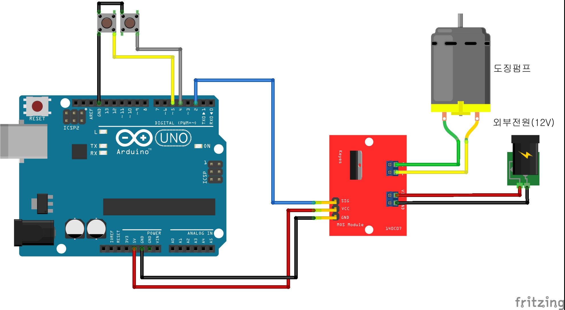 모스펫(IRF520)을 이용해서 정량펌프를 연결하고 아두이노 우노에서 제어할 수 있도록 해보자!