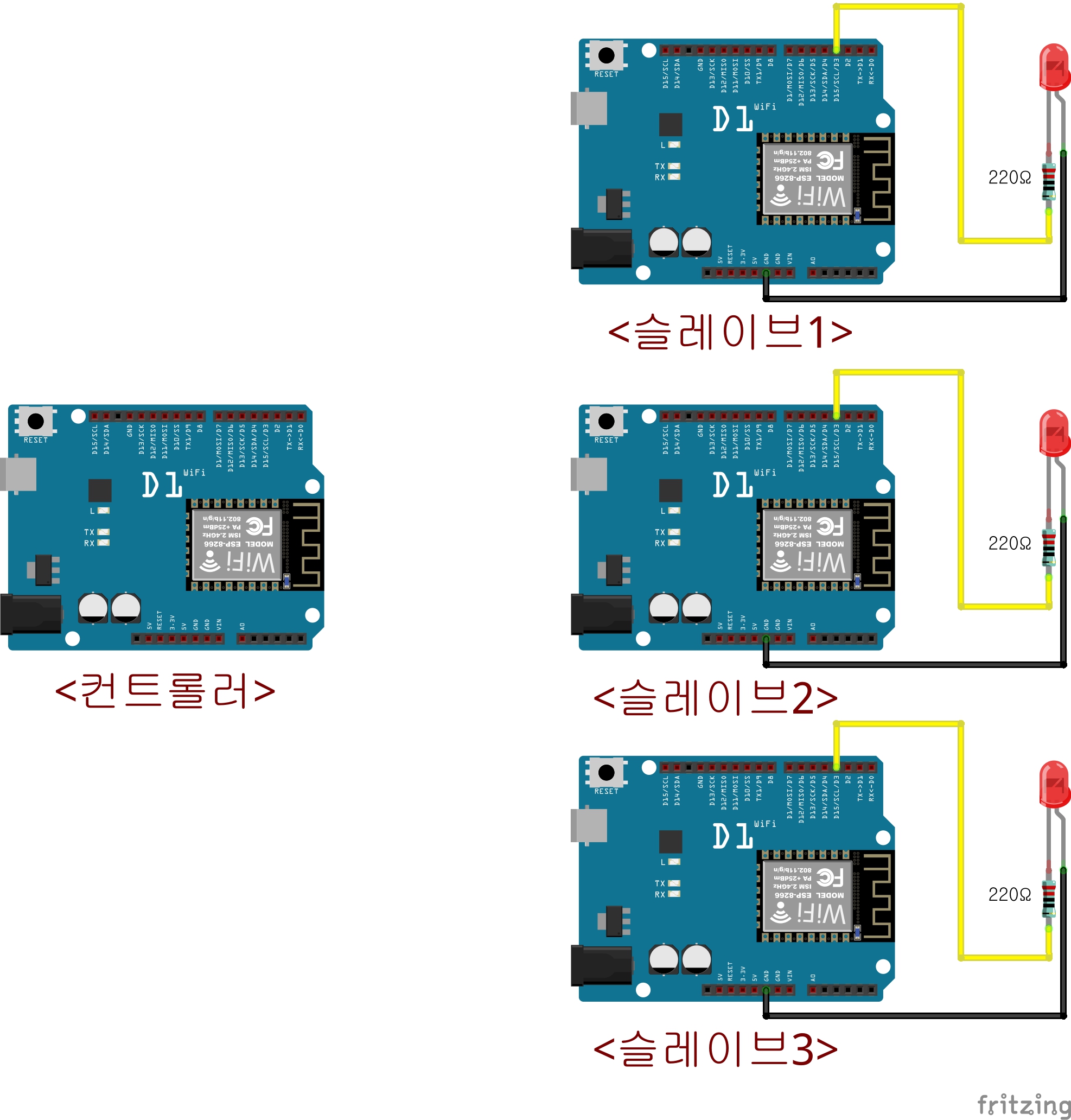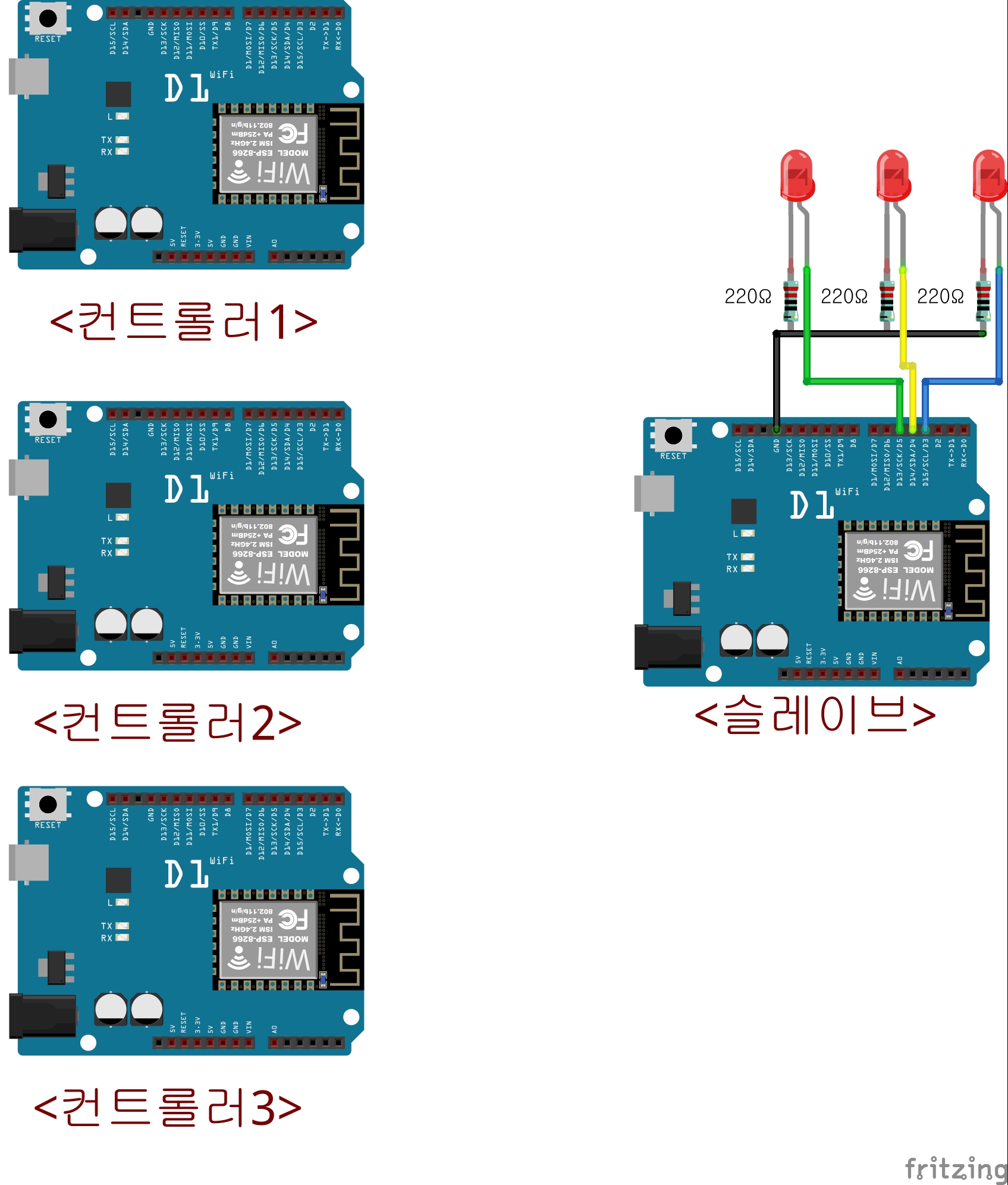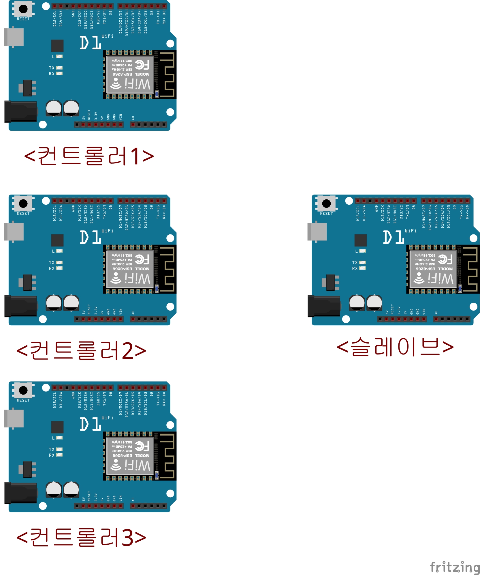 이번편은 ESP8266보드 4대를 준비해서 1:3으로 단방향 통신을 해보도록 하자!