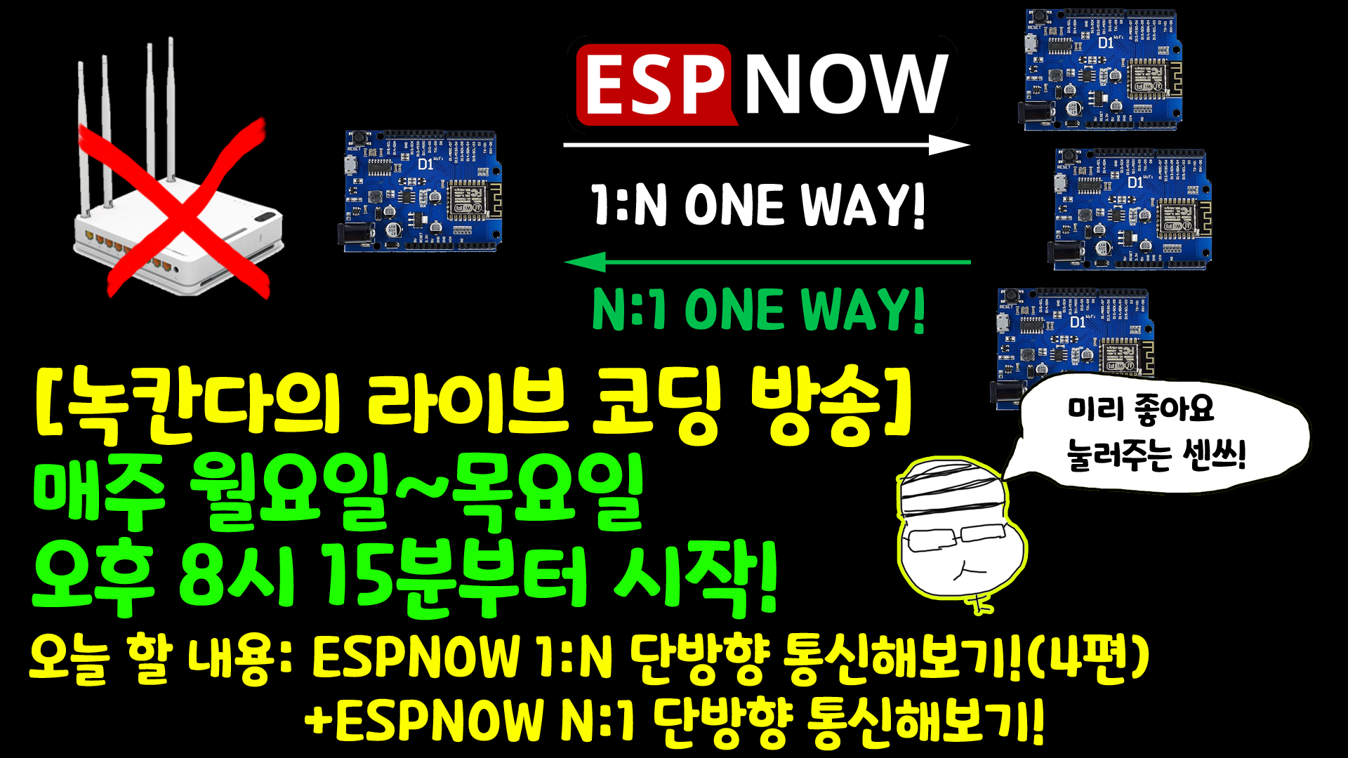 [아두이노#472] (ESPNOW#4) ESP8266보드 1:3으로 단방향 통신하는 방법!(1:N / N:1)(녹칸다/포로리야공대가자)