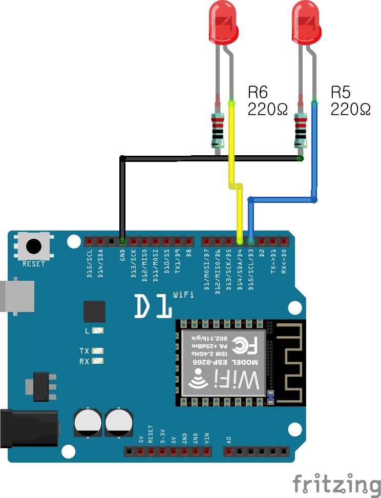 10.ESPHOME에 등록된 보드에 버튼2개와 LED 2개를 연결해서 노드레드로 제어하는 예제를 만들어보시오!