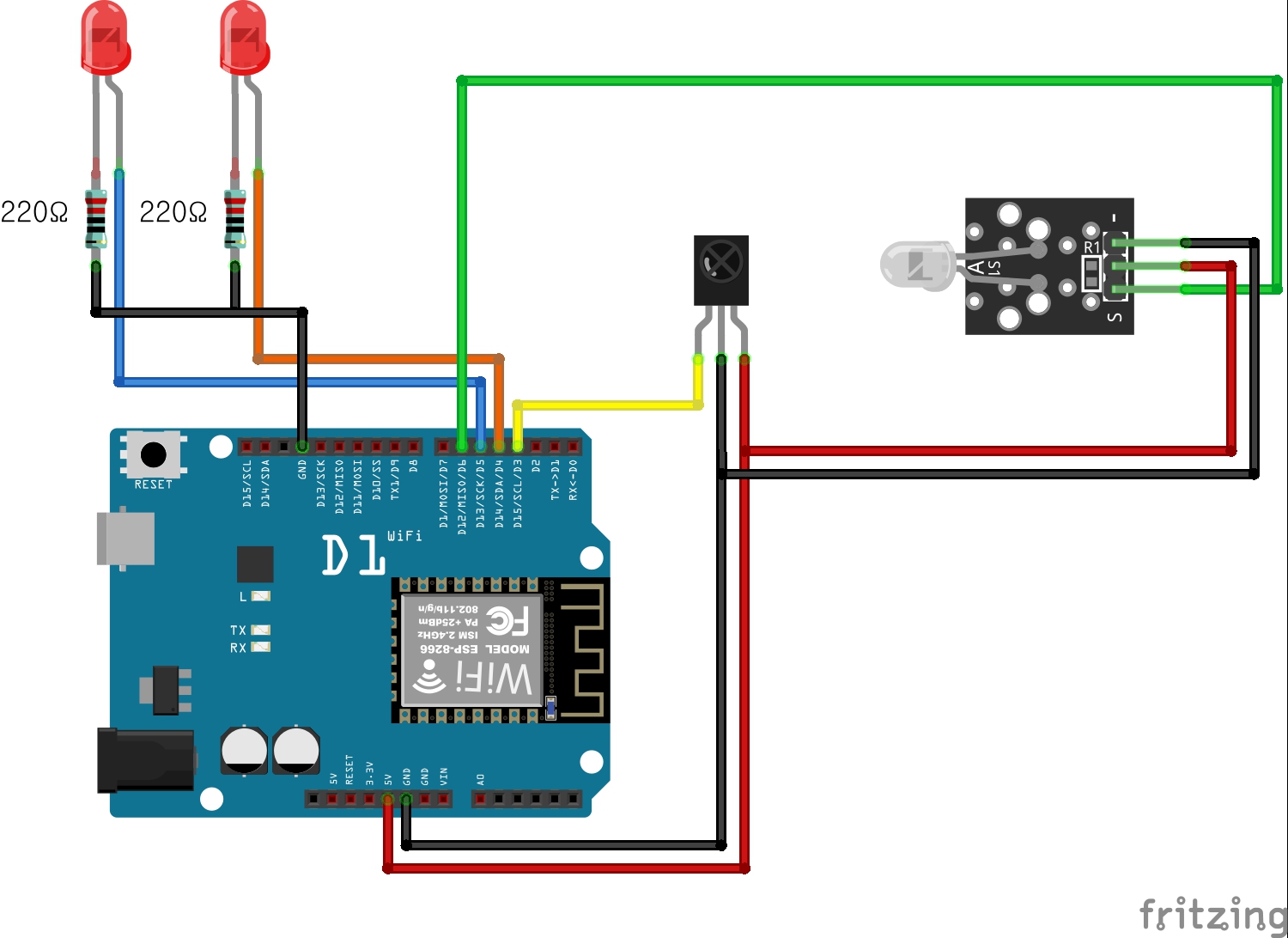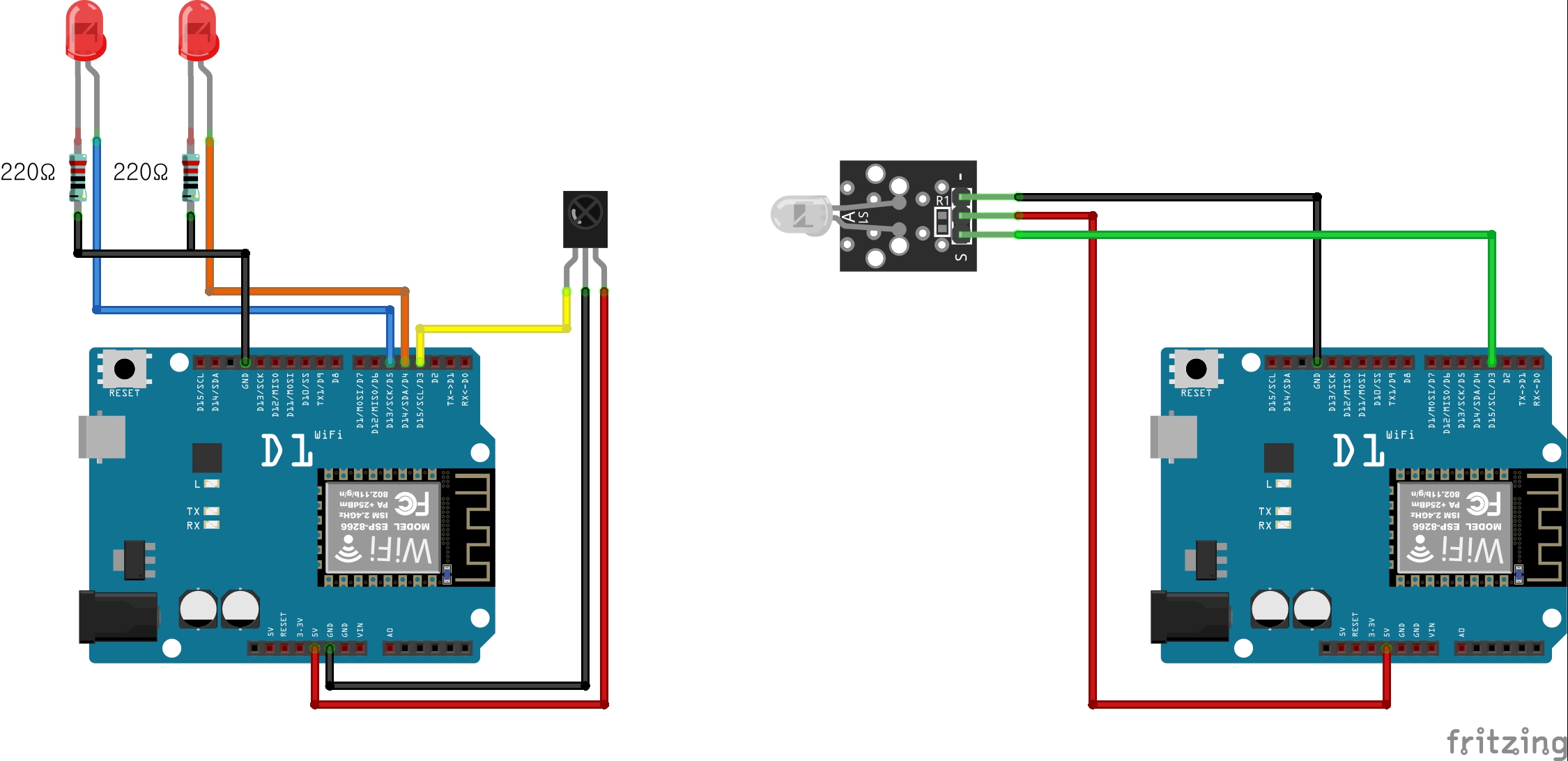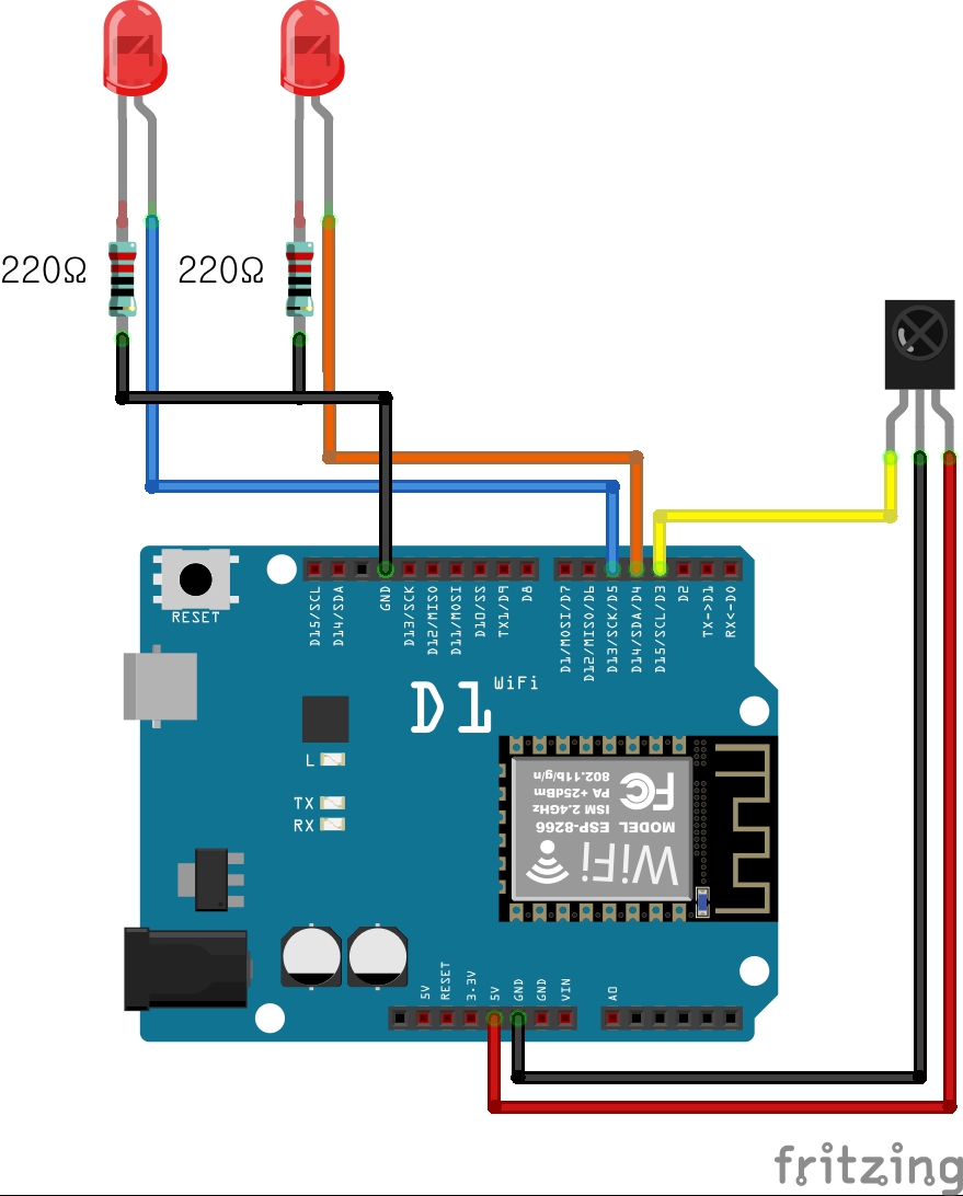 2.LED 2개를 연결하고 리모컨에 1번을 누르면 1번LED가 토글되고 2번버튼을 누르면 2번LED가 토글되도록 하시오!