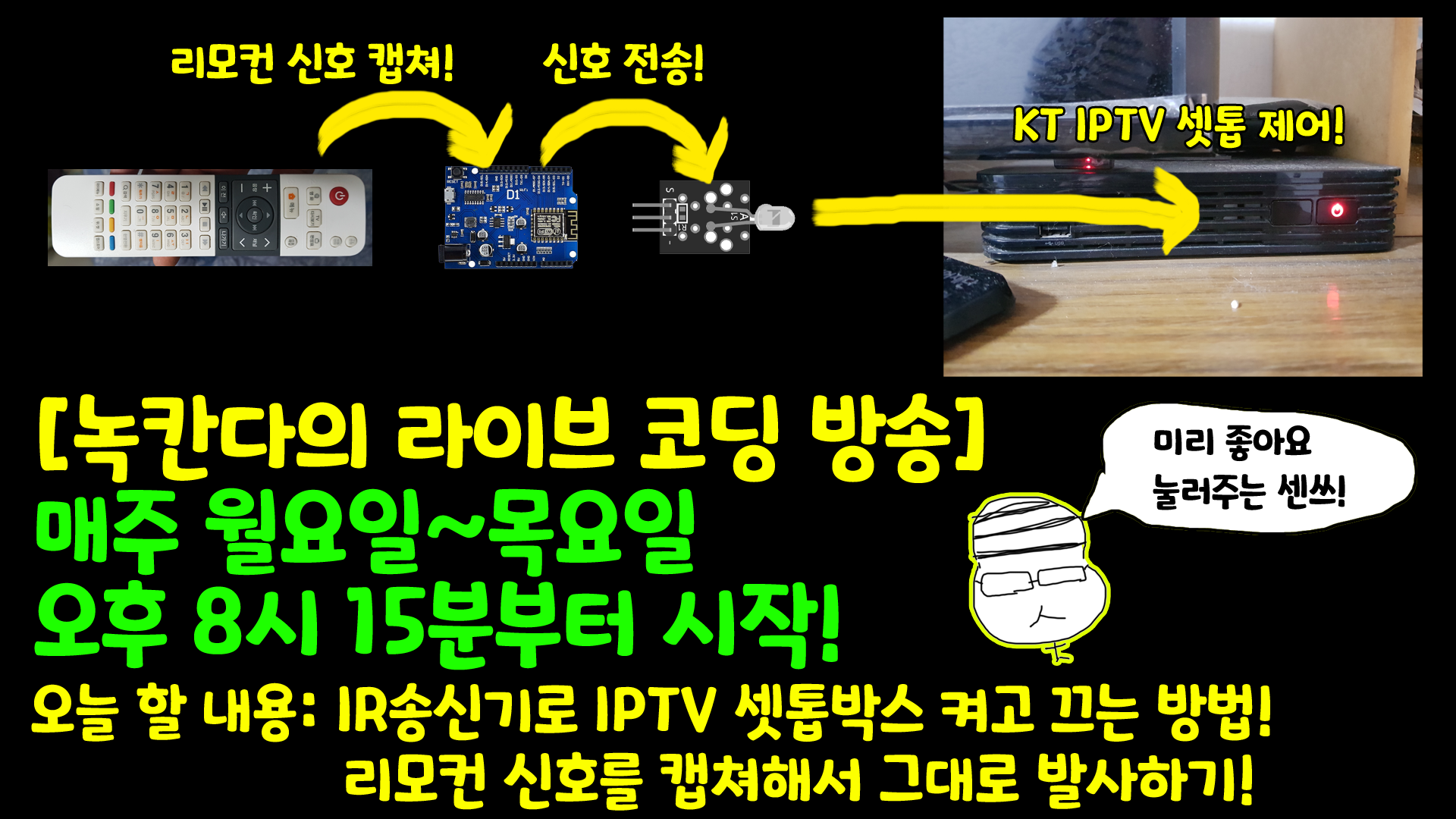 (녹칸다는 현재 TV와 IPTV셋톱박스를 제어하는데 흥미가 있음)
