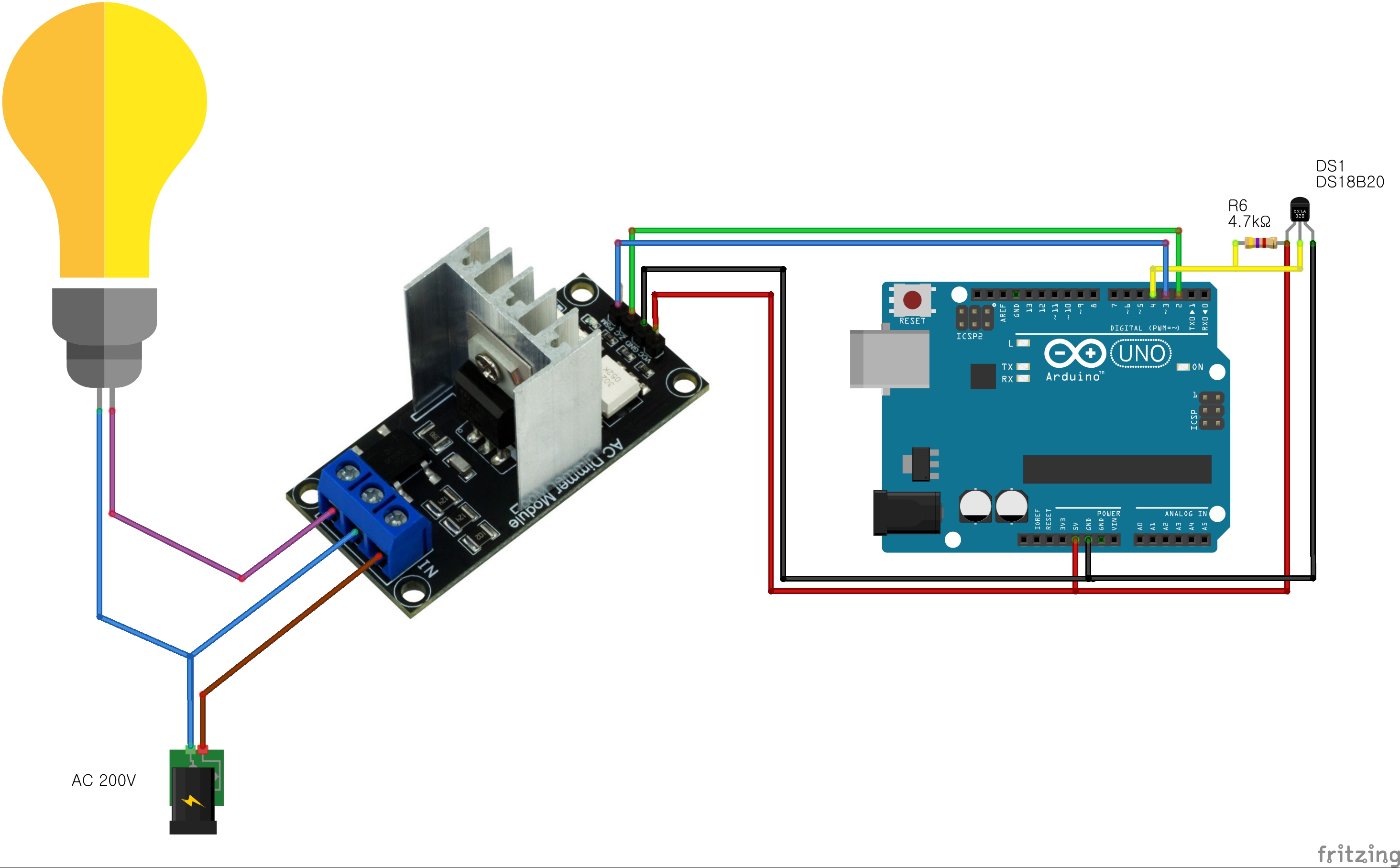 최근 녹칸다가 RobotDyn AC dimmer 모듈을 이용해서 220V전구의 밝기를 제어하는 예제를 구현했다!
