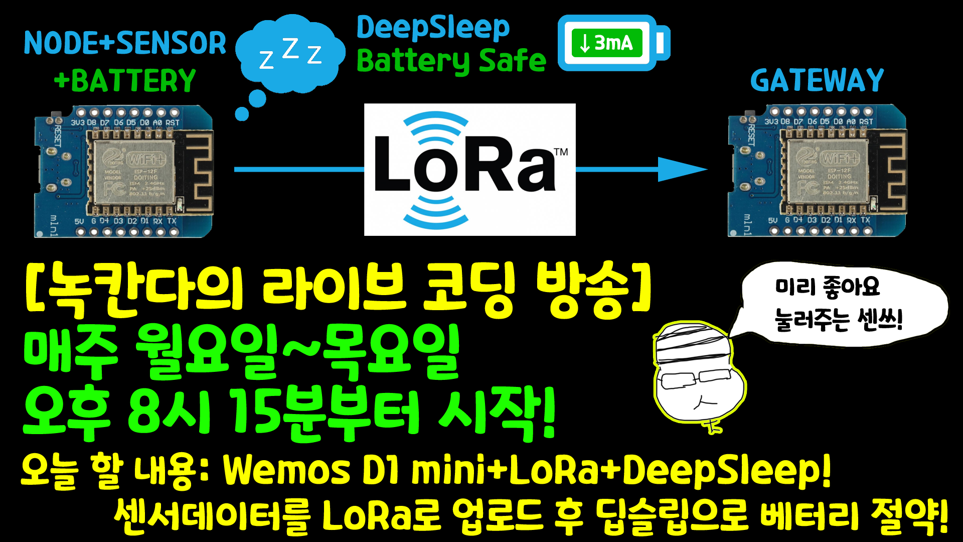 [아두이노#489] (LoRa#10) Wemos D1 mini➕LoRa(SX1276)➕DeepSleep😪(녹칸다/포로리야공대가자)