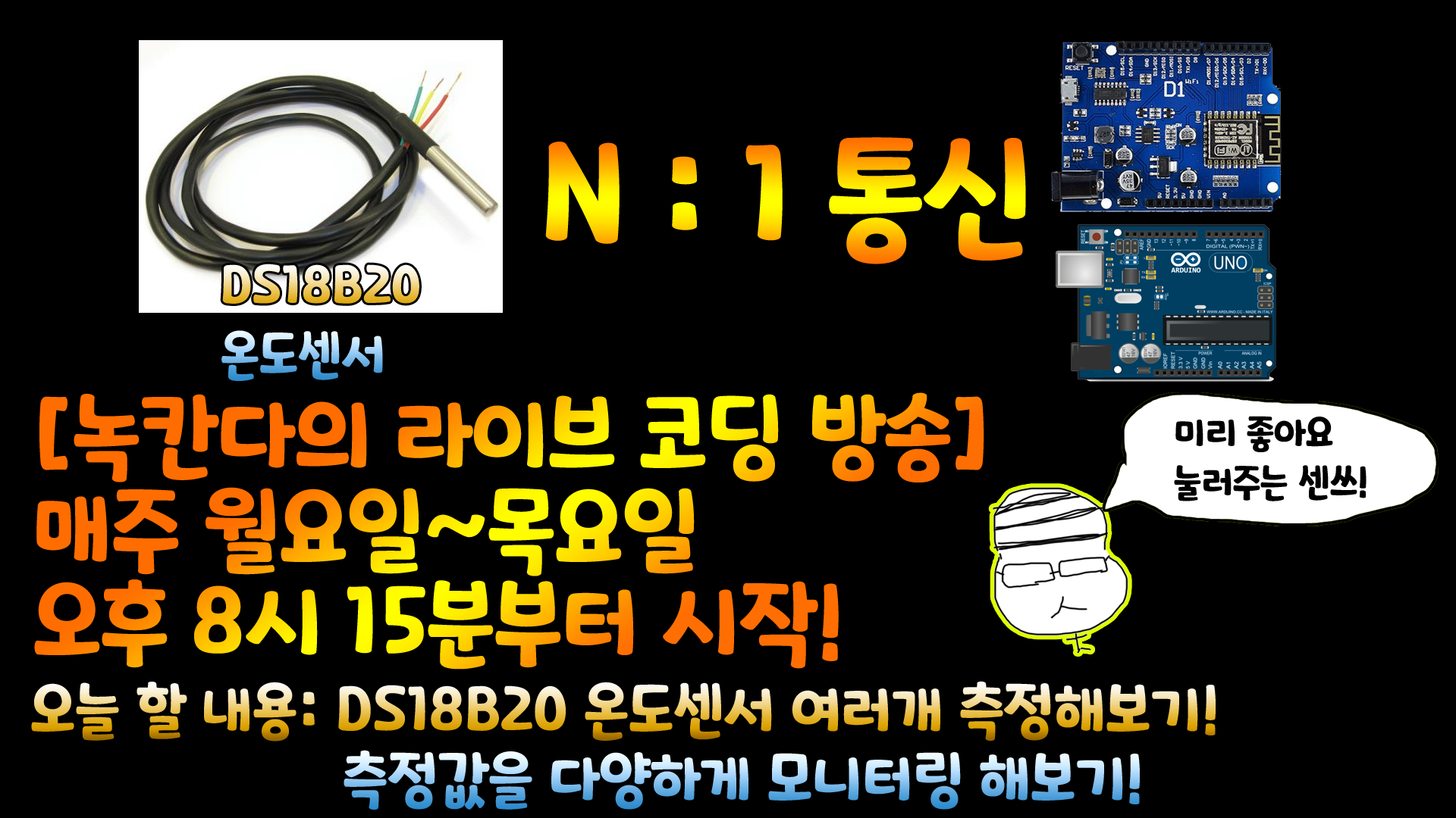 과거에 녹칸다가 DS18B20센서 1개를 사용하는 방법을 진행했었다!(이때는 여러개 사용 가능하다는 사실을 몰랐음)
