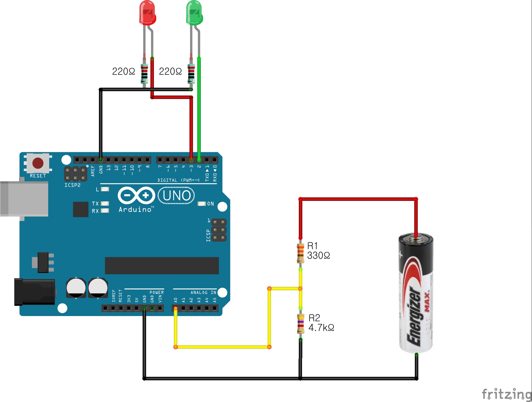 아두이노의 아날로그 입력으로 배터리의 전압을 측정해서 건전지의 용량과 수명을 유추해보는 것이다!