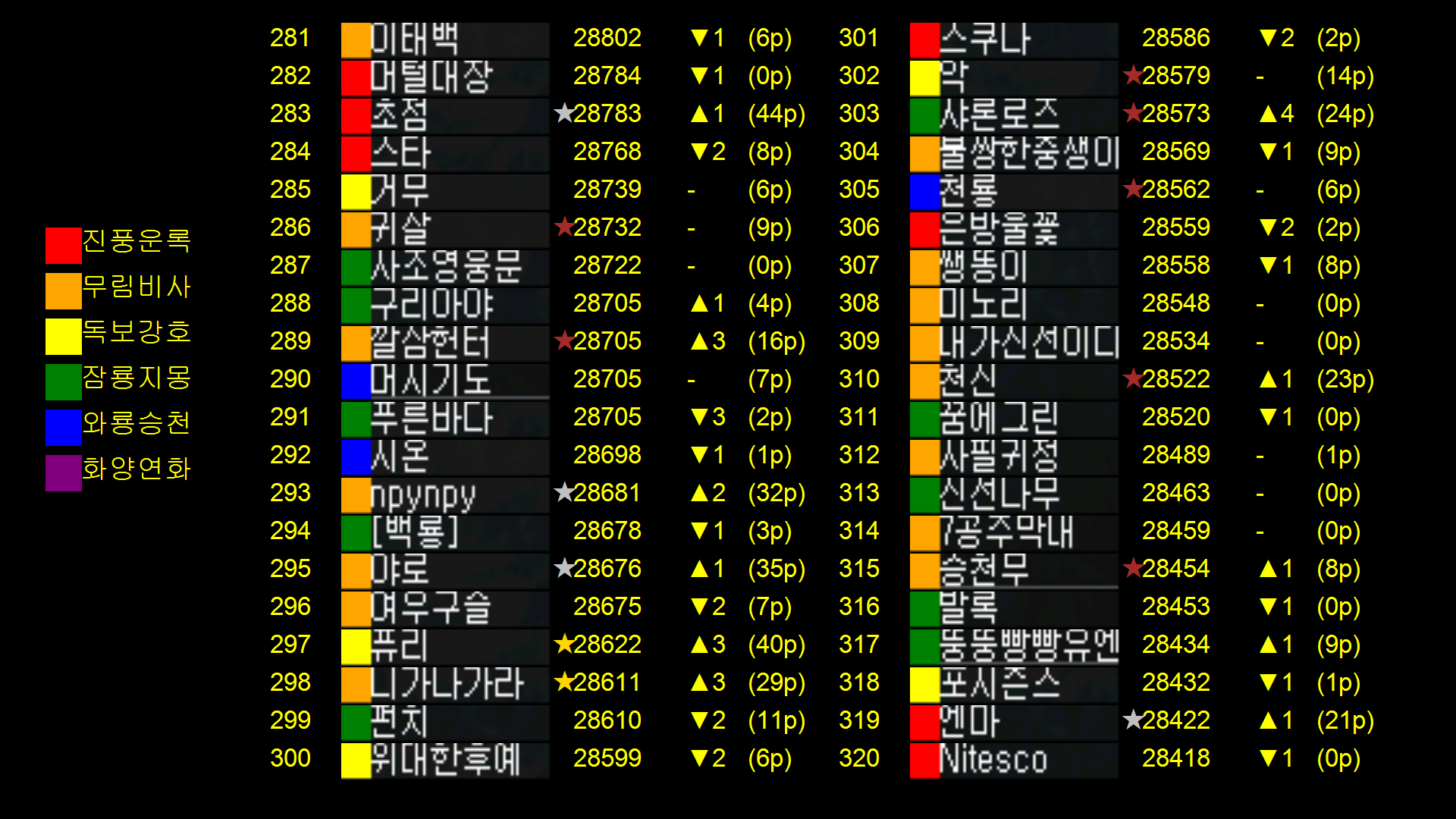 | 천상비 고인물 분석기(2022.10.20~2022.10.27) (0) | 2022.10.27 |