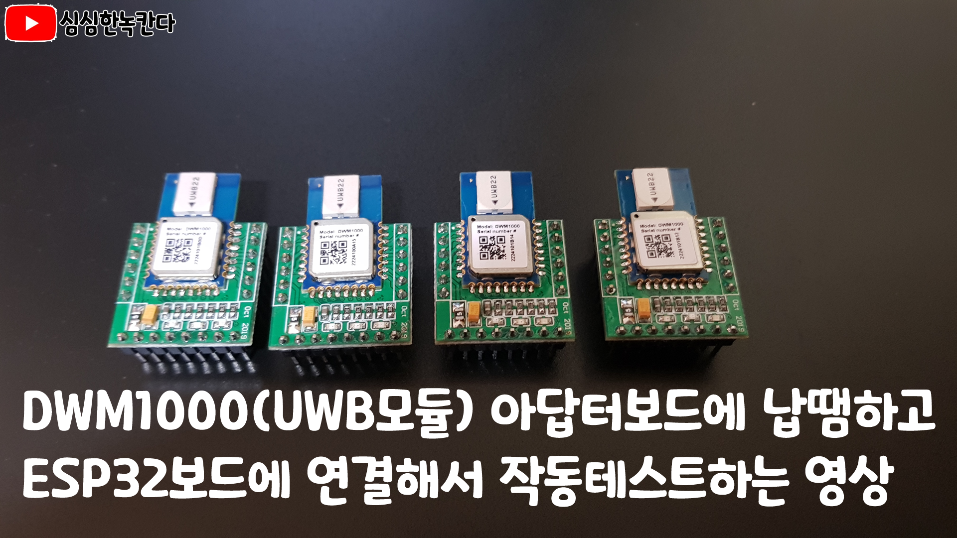 DWM1000(UWB모듈) 아답터보드에 납땜하고 ESP32보드에 연결해서 작동테스트 하는 영상(녹칸다 아두이노 arduino)