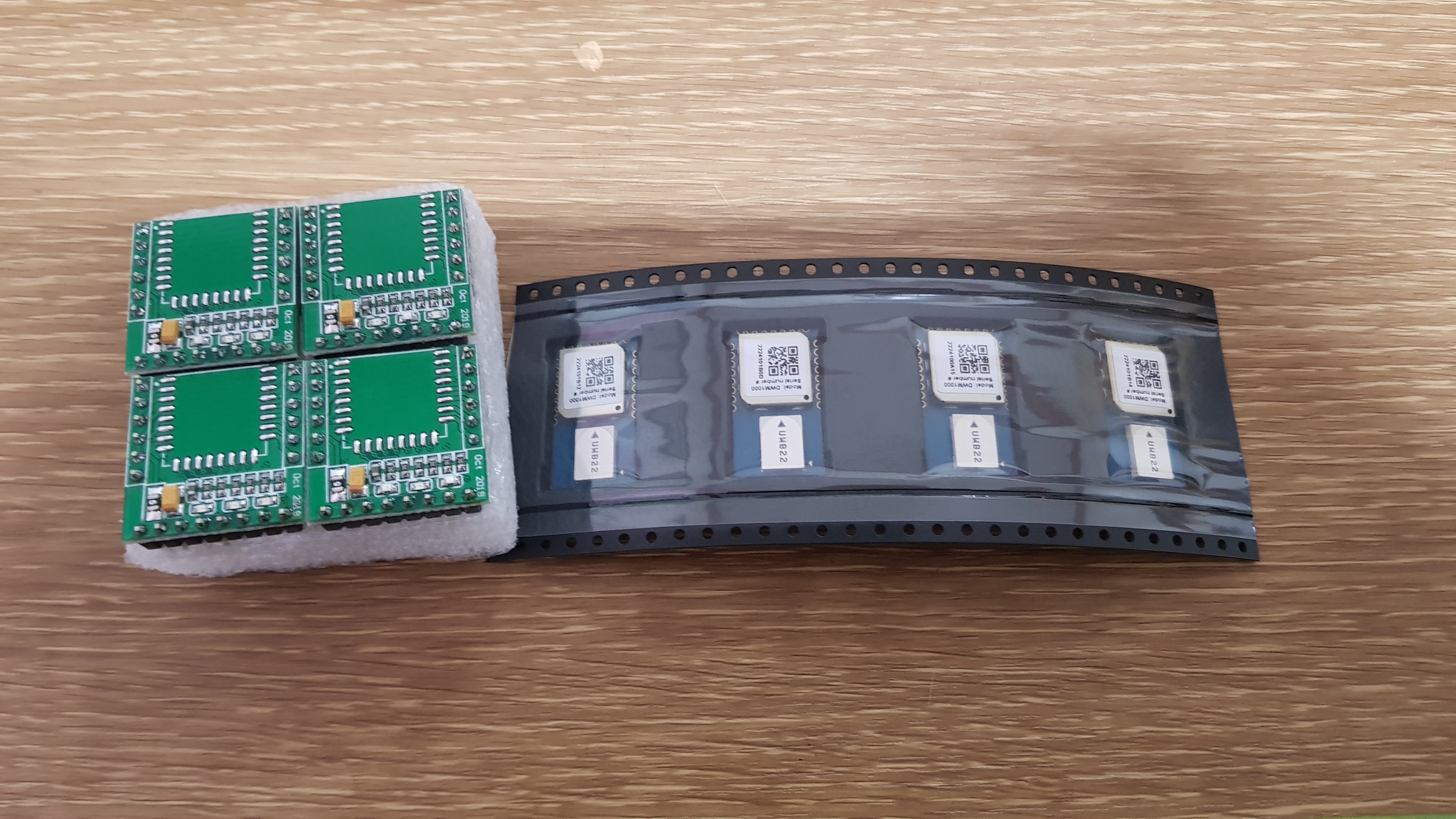 왼쪽이 전용 아답터보드이고 오른쪽이 uwm모듈인 dwm1000입니다!