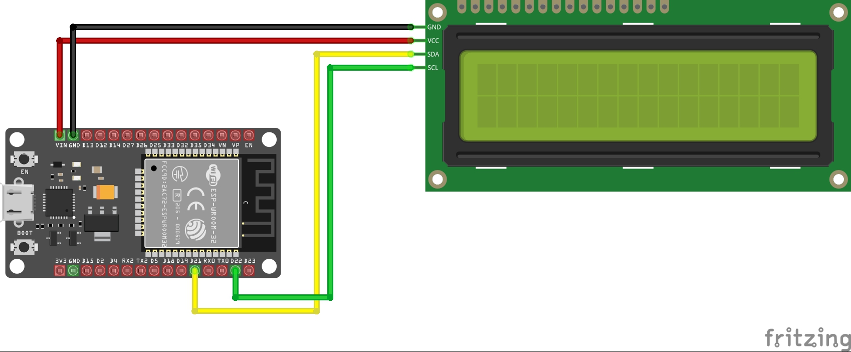 4.ESP32에 1602LCD를 연결하고 녹칸다가 시리얼모니터에서 전송한 text를 LCD화면에 출력하는 예시를 보이시오!