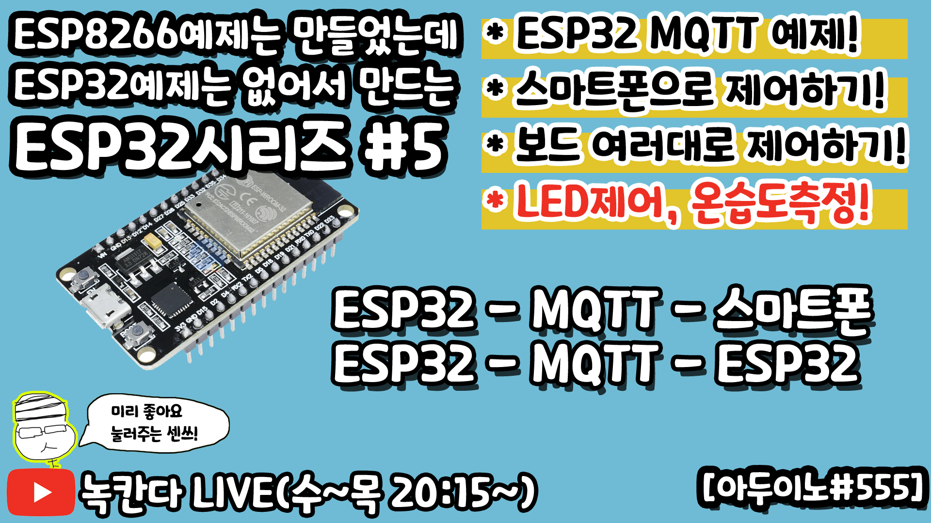 [아두이노#555] ESP32를 MQTT프로토콜을 이용해서 스마트폰으로 제어해보기!(녹칸다ESP32#5)