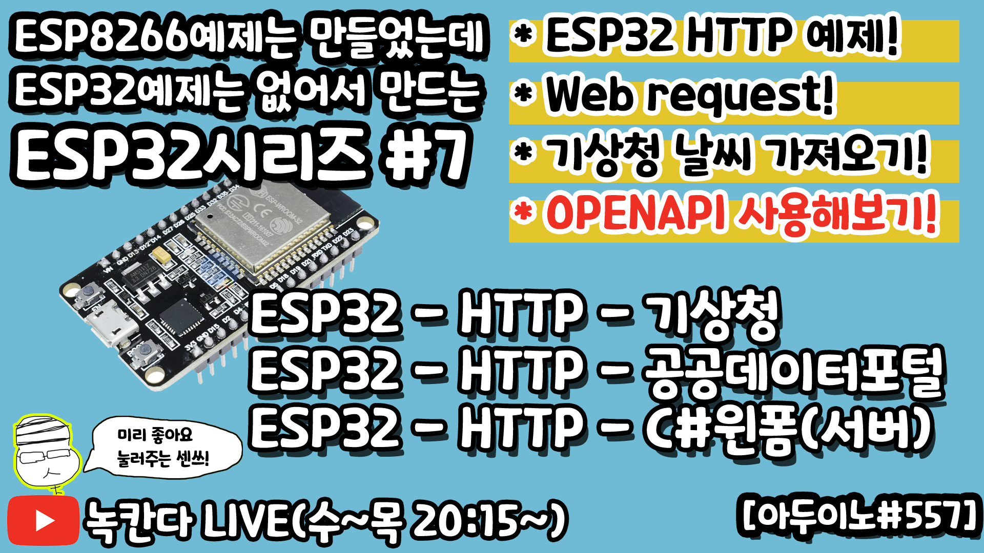 [아두이노#557] ESP32와 HTTP프로토콜로 기상청, 공공데이터포털, C#윈폼의 OPENAPI서비스 활용해보기!(녹칸다ESP32#7)