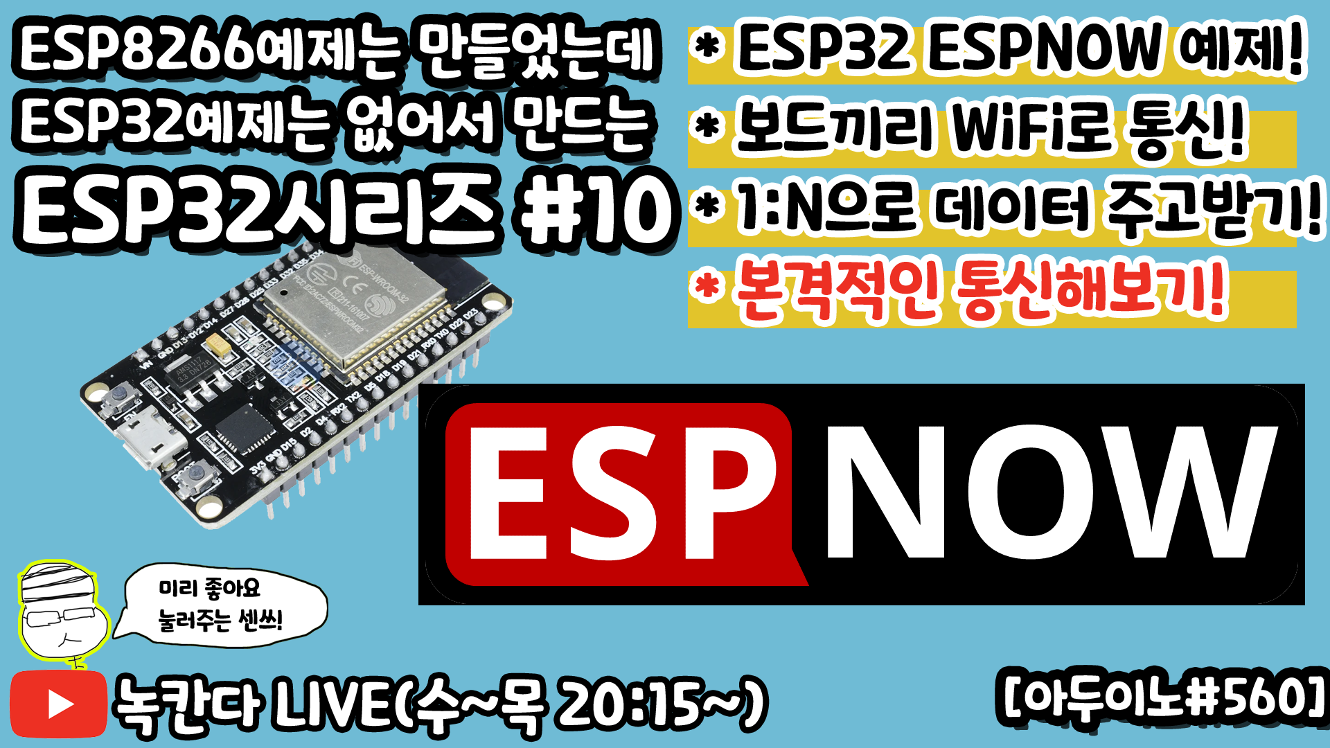 [아두이노#560] ESP32에 내장된 ESPNOW통신을 이용해서 보드끼리 1:N통신하는 방법 알아보기!(녹칸다ESP32#10)