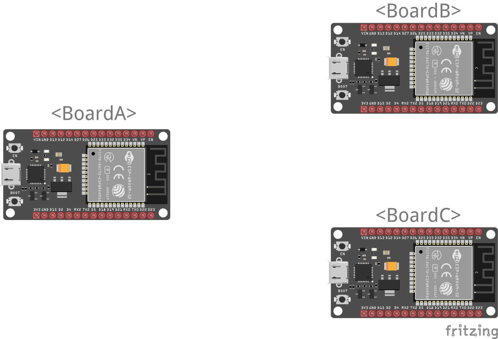 5.보드A,B,C 3개가 있을때 A가 B에게 보내고 B가 C에게 보내서 네트웍을 형성하는 방법!