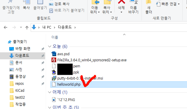 그리고 내컴퓨터에서 생성한 php파일을 하나 업로드 해보도록 하자!