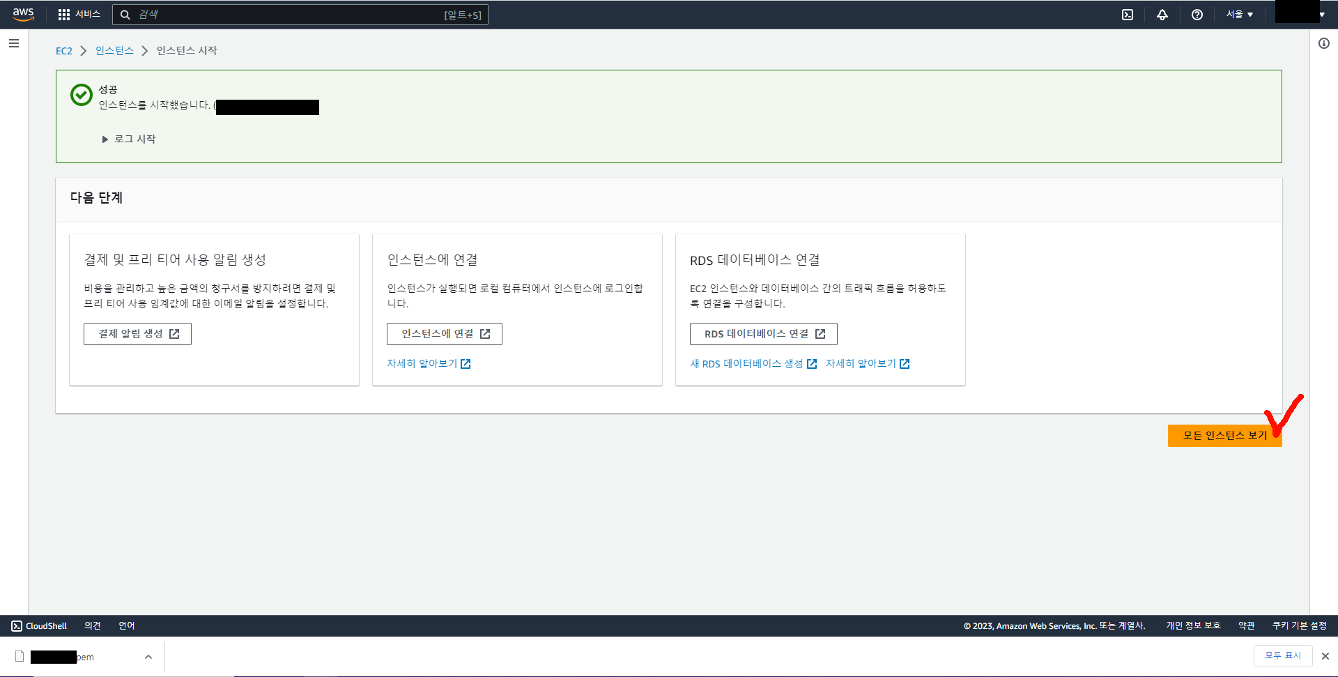 모든 설정이 완료되었으니 인스턴스 시작 버튼을 눌러준다!