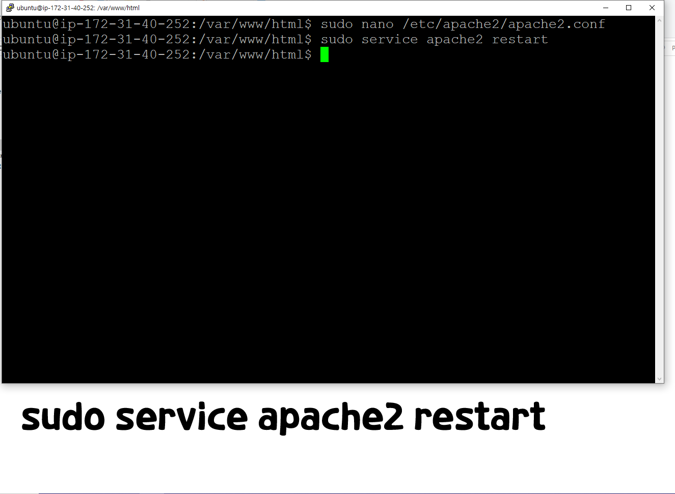 웹서버 설정파일에 수정사항이 생겼으므로 아래 명령어로 재시작해준다!