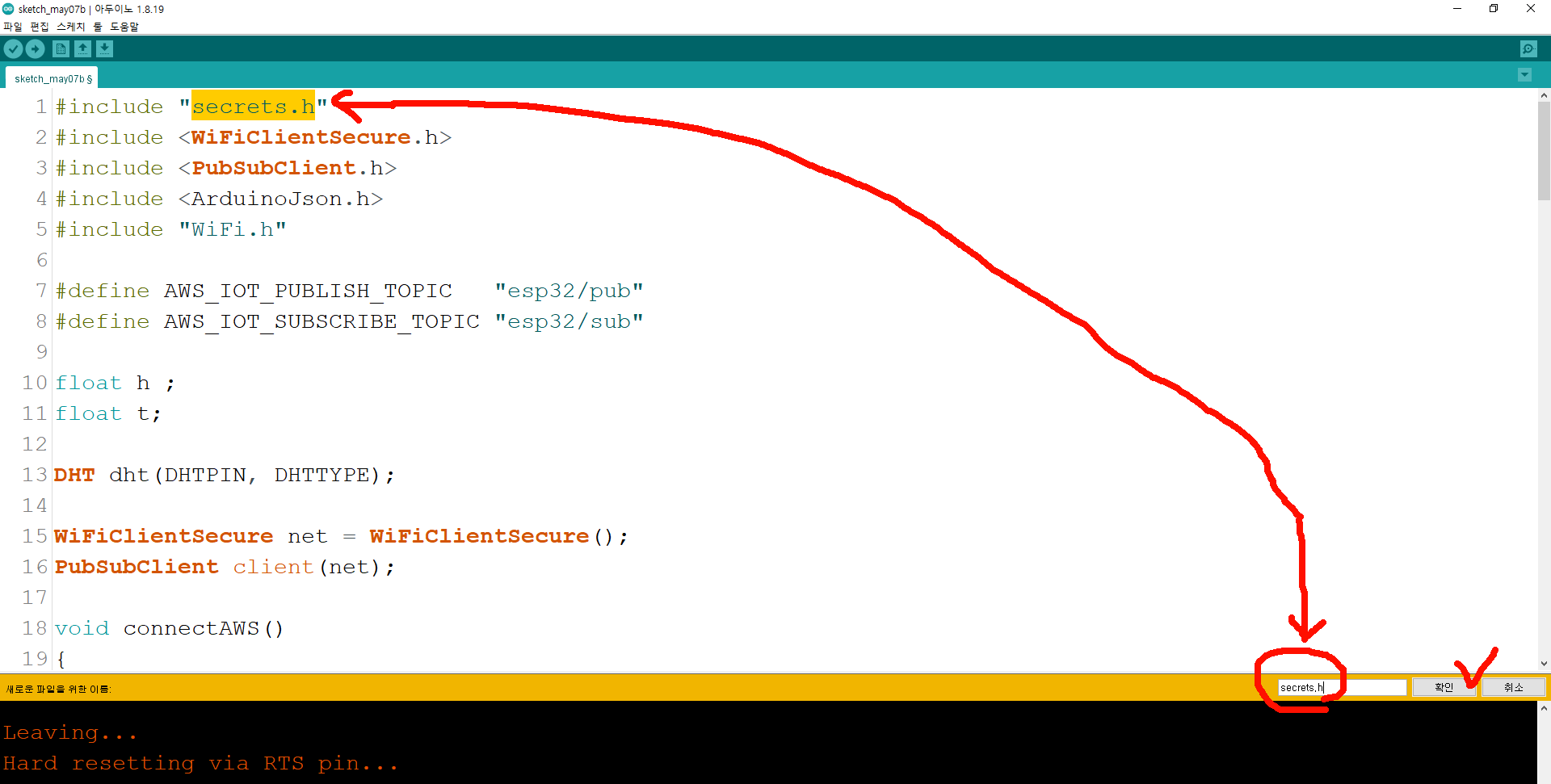 새탭의 이름은 secrets.h로 붙혀준다!