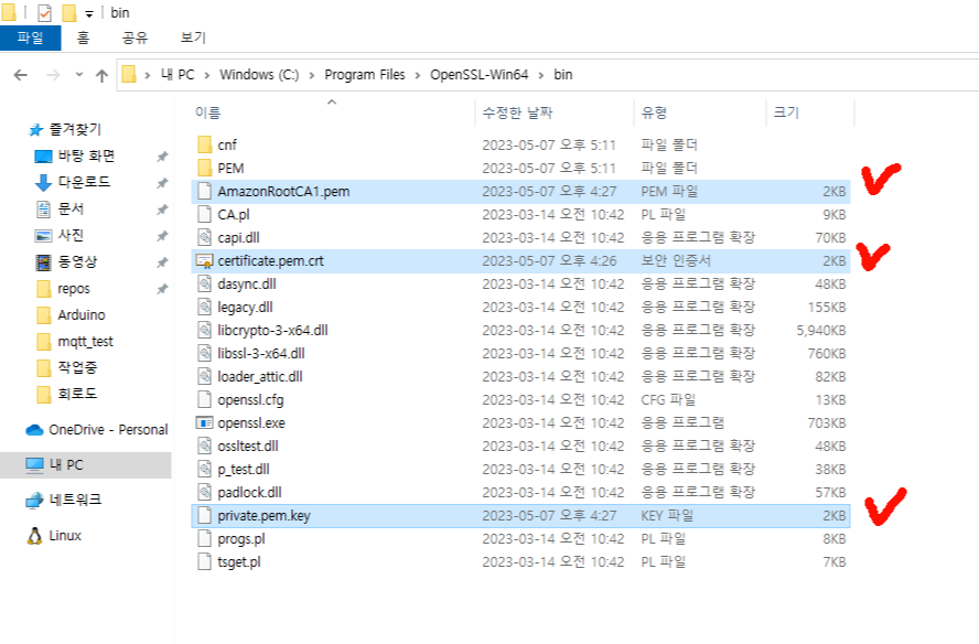 지금까지 제대로 했다면 위 화면처럼 pfx파일이 생성되어 있을 것이다!
