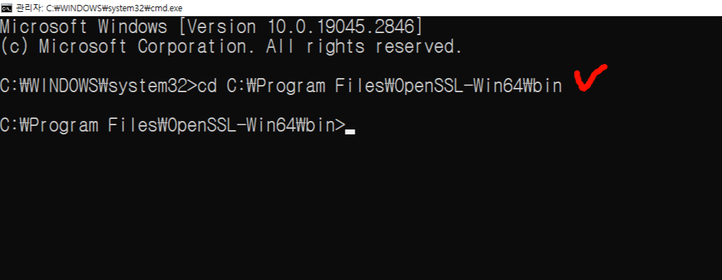 조금전에 열어둔 명령프롬프트에 아래와 같이 입력해준다!