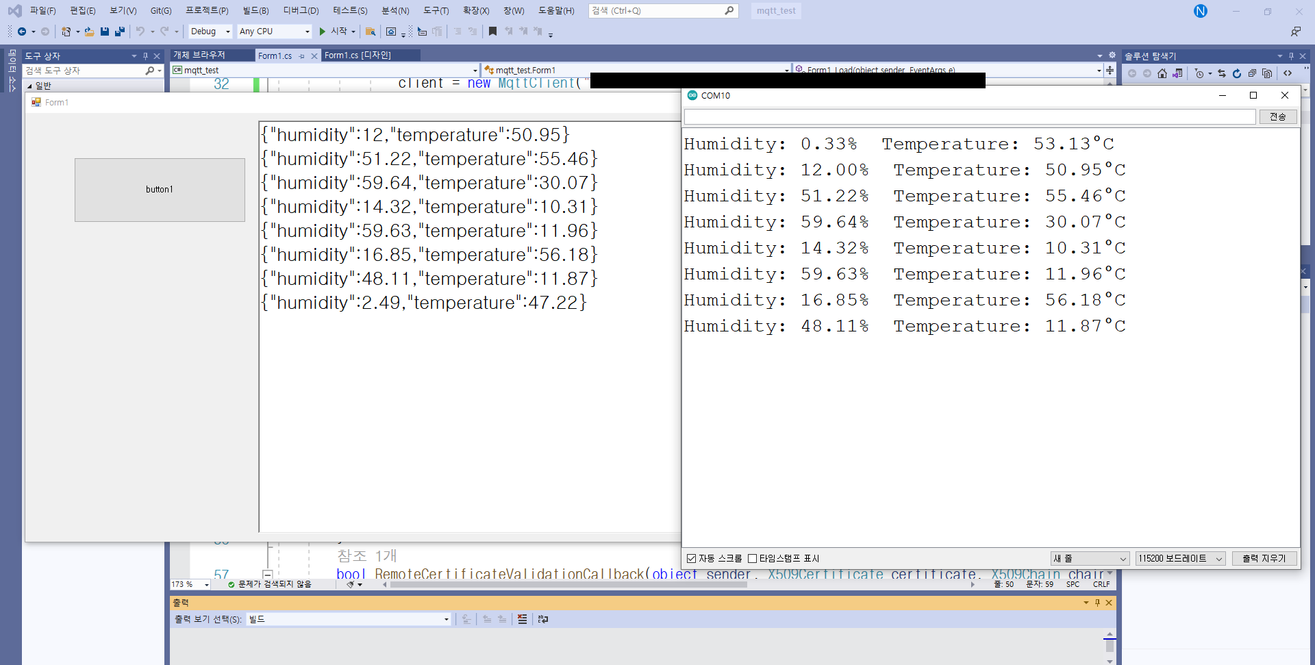 그럼 aws iot에 esp32가 MQTT ssl/tls로 업로드하는 센서데이터가 C#윈폼화면에 나오게 된다!
