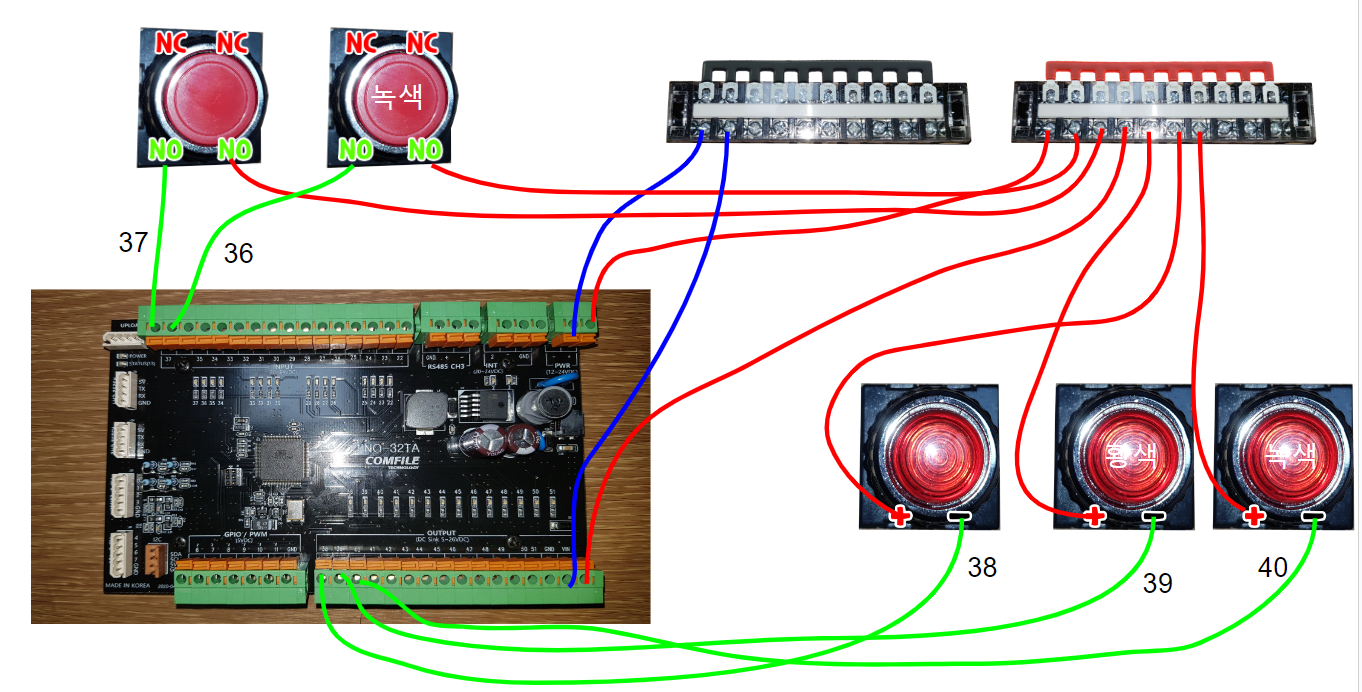 2.적색램프가 38번, 황색램프가 39번, 녹색램프가 40번에 연결되어있을때(출력)