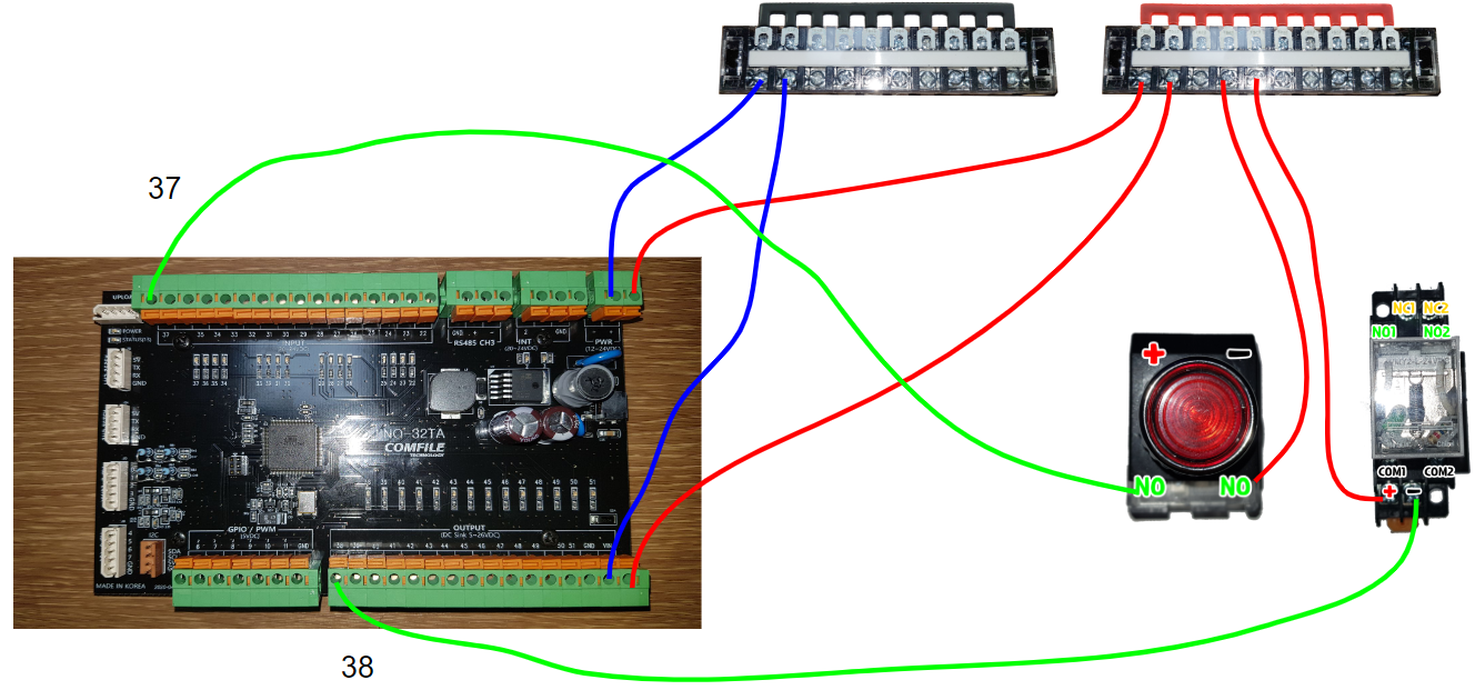 //37번에 버튼을 누르면 38번에 있는 릴레이가 작동한다