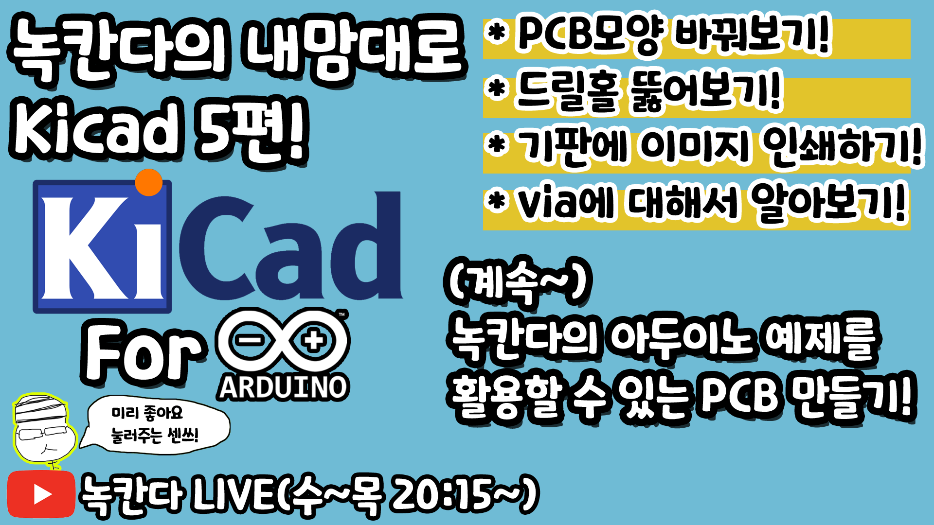 [KiCad 5편] PCB둥근테두리,드릴홀 뚫기, 이미지넣기, via 적용하는법 알아보고 녹칸다의 아두이노 예제를 PCB보드로 만들어보기!(녹칸다의 내맘대로 KiCad)