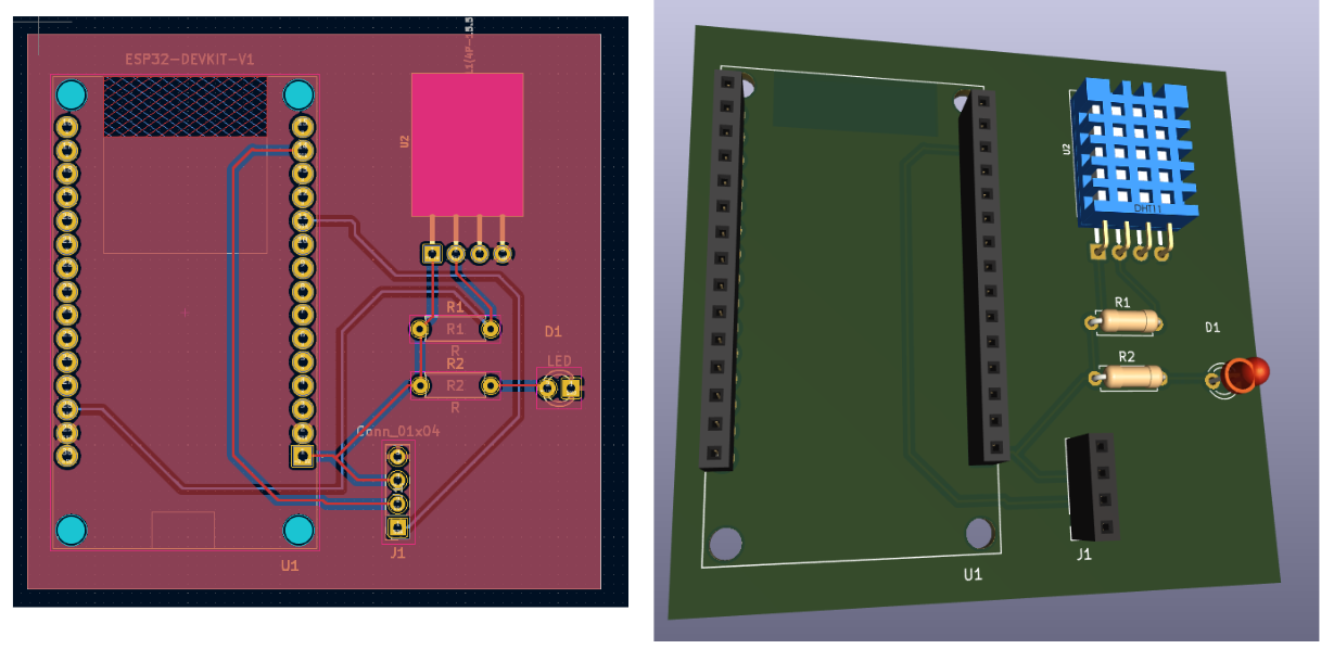 4.ESP32보드에 온습도센서(DHT-11)을 연결하고 측정값을 0.91인치 OLED(SSD1306)에 출력하는 PCB를 제작하시오!