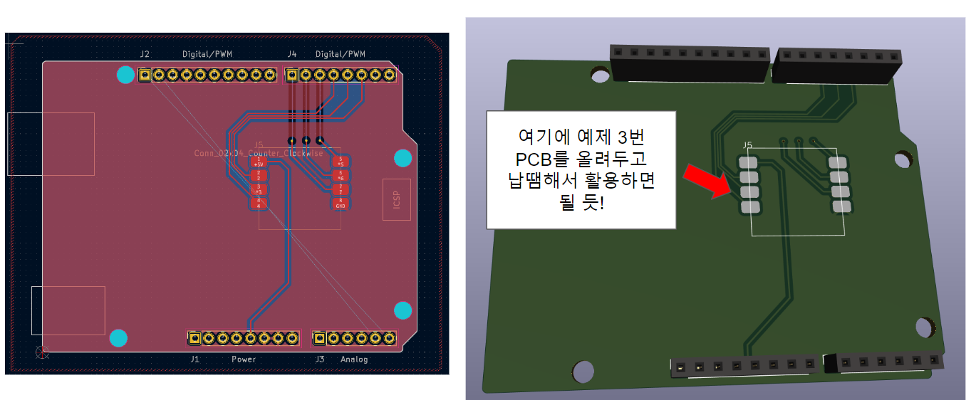 3.캐슬드홀을 이용해서 나의 PCB를 다른 PCB에 붙혀서 쓸 수 있도록 만드시오!