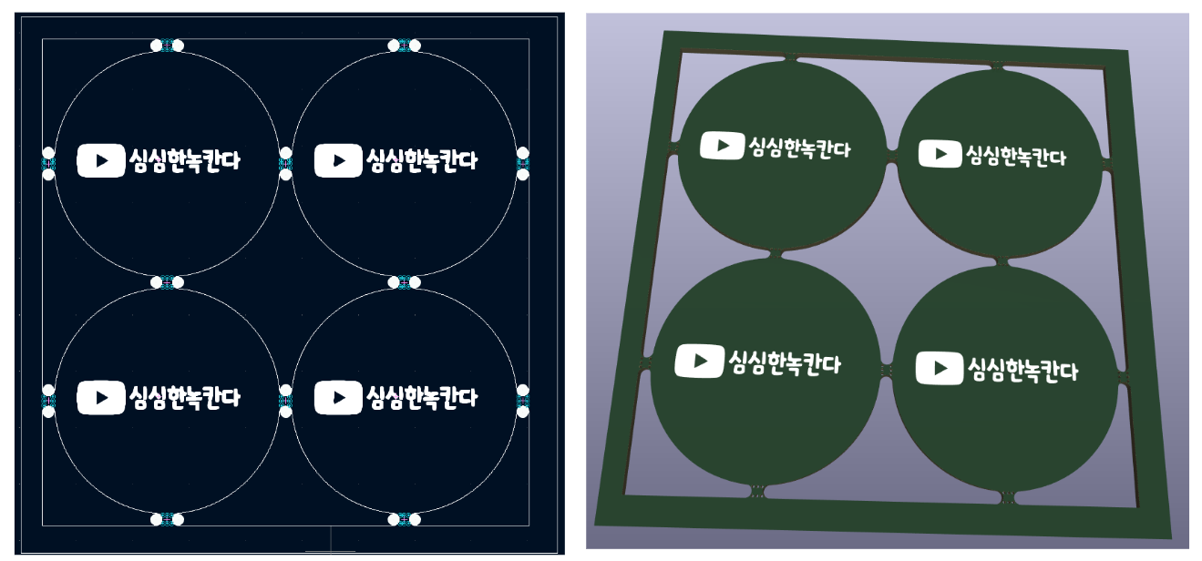 2.4cm*4cm의 동그란 보드 4개를 한판으로 제작하기 위해서 mouse bite를 적용한 PCB보드를 제작하시오!