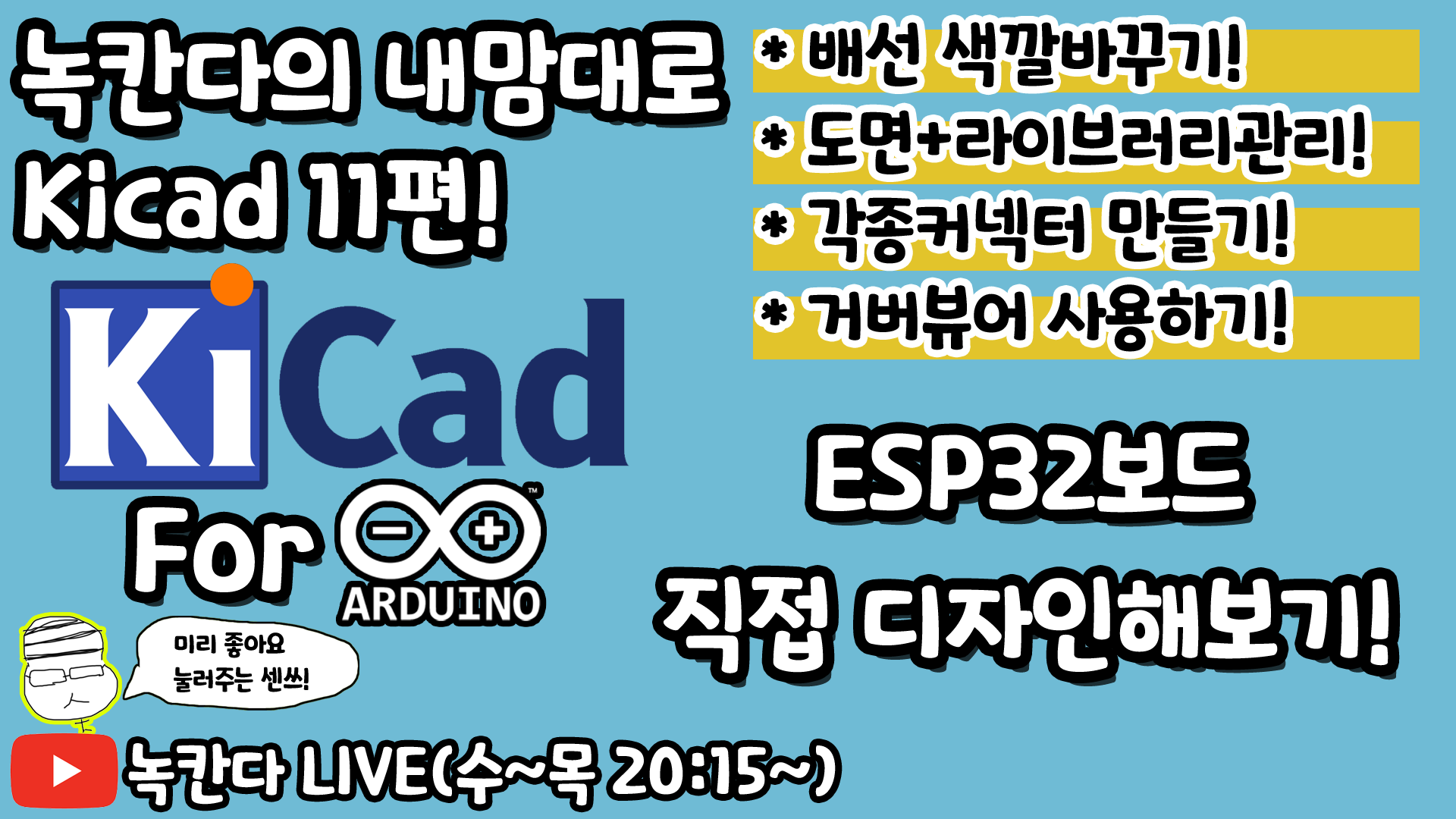 [KiCad 11편] 배선색 바꾸기, 도면시트와 라이브러리 관리, 거버뷰어사용, 점퍼케이블과 JST커넥터 만들기, ESP32보드 직접 디자인해보기!(녹칸다의 내맘대로 KiCad)
