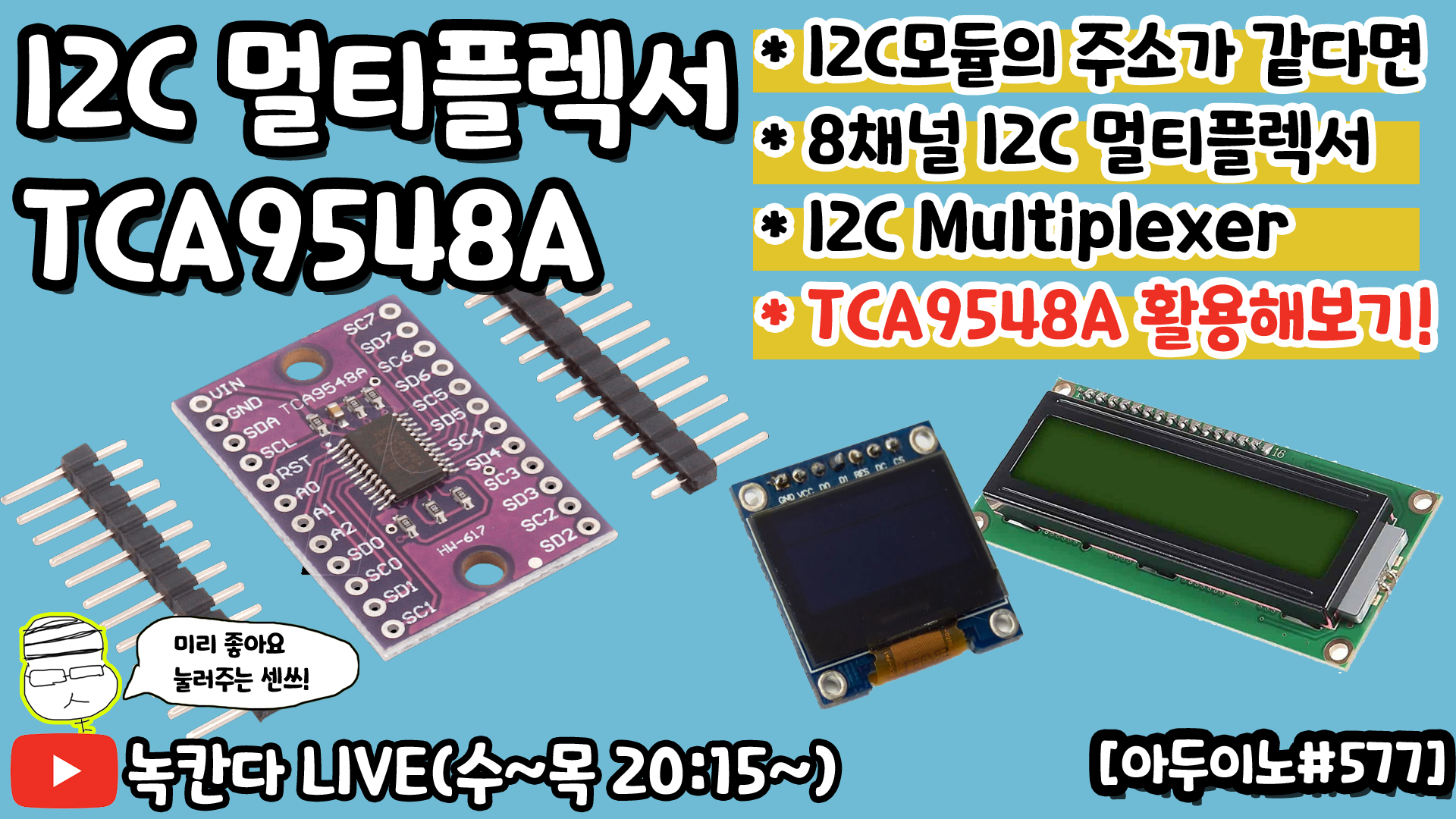 [아두이노#577] TCA9548A I2C 8채널 멀티플렉서(multiplexer)로 주소가 같은 I2C모듈을 Arduino에서 활용해보기!(녹칸다의 아두이노)