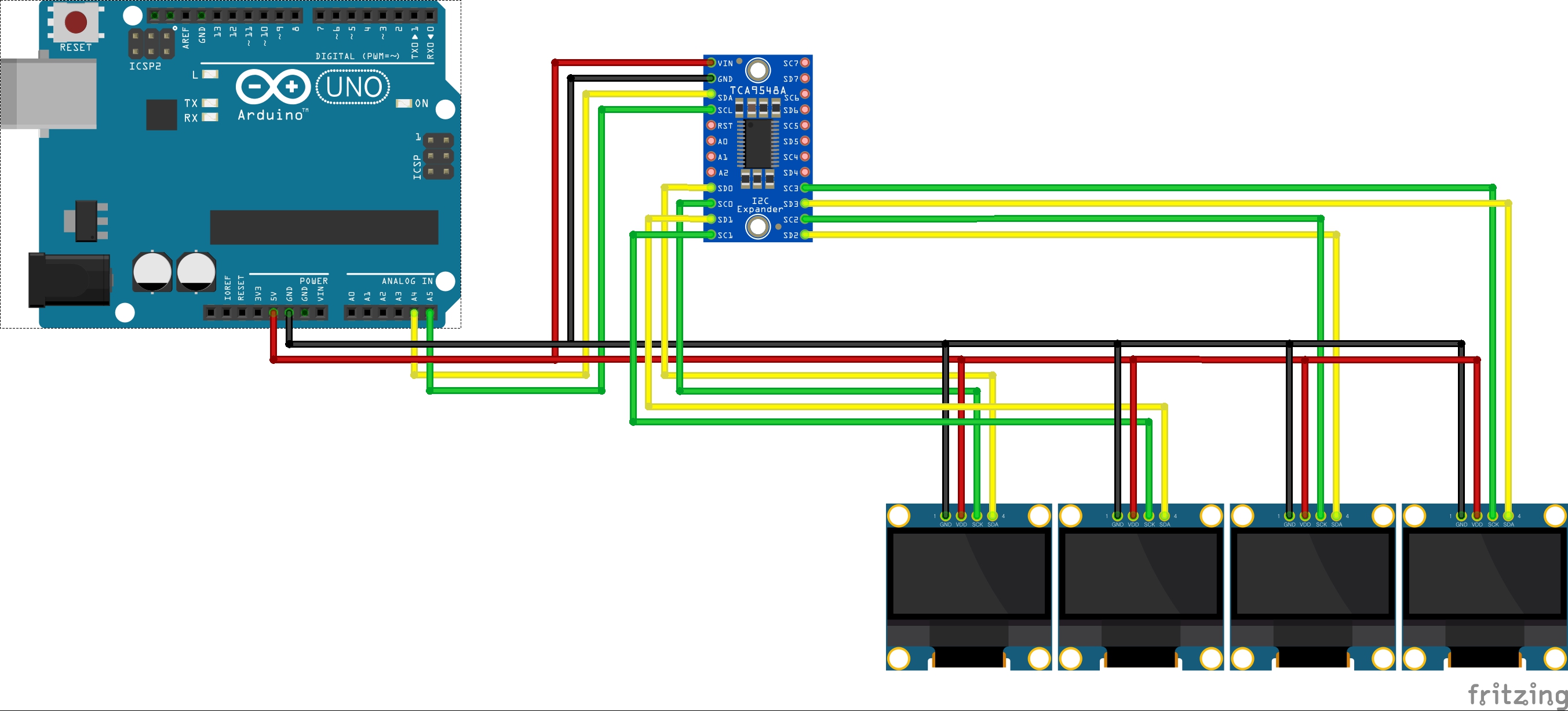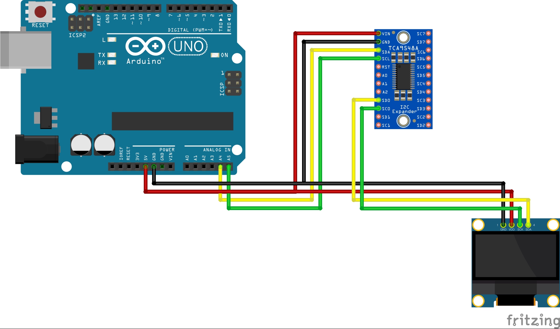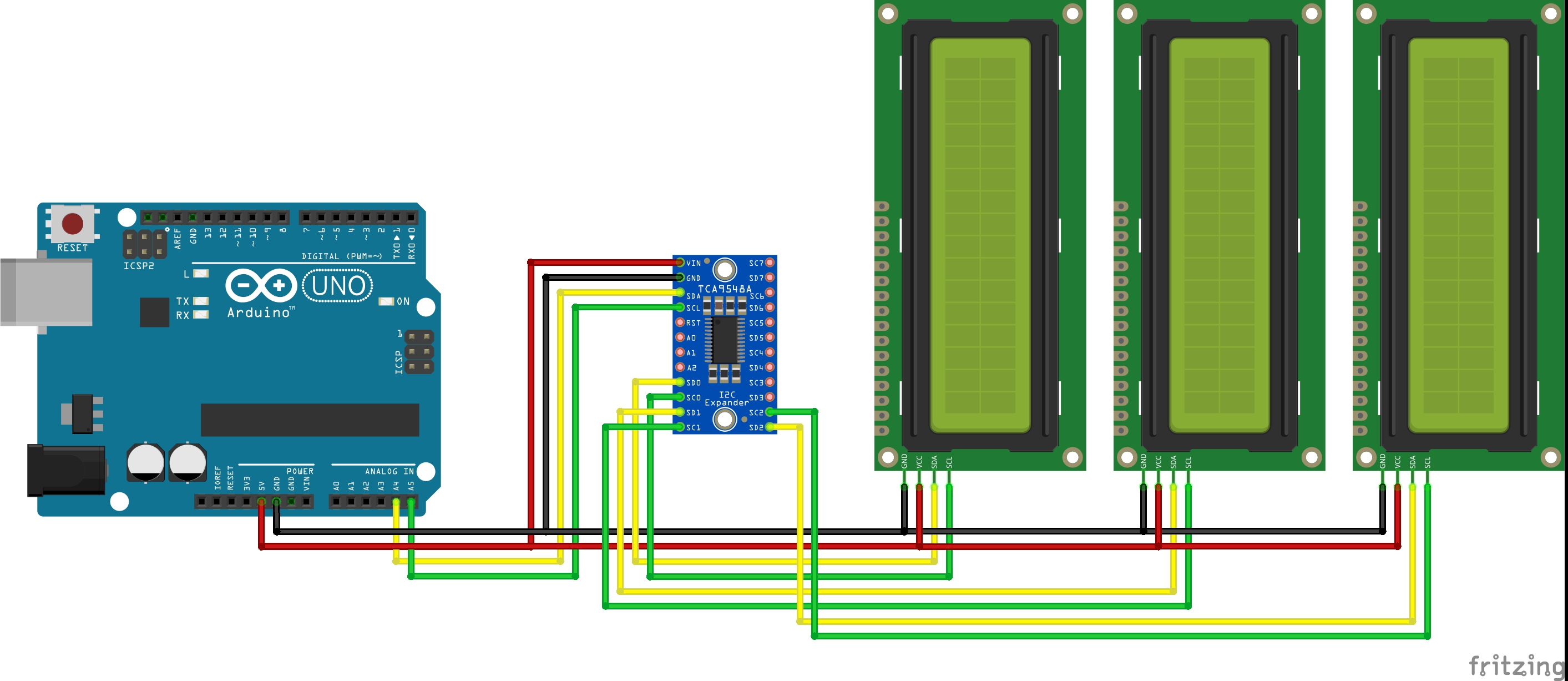 기본 작동원리는 TCP9548A와 아두이노(arduino)를 I2C통신으로 연결하고 경로를 스위칭 하는 것이다.