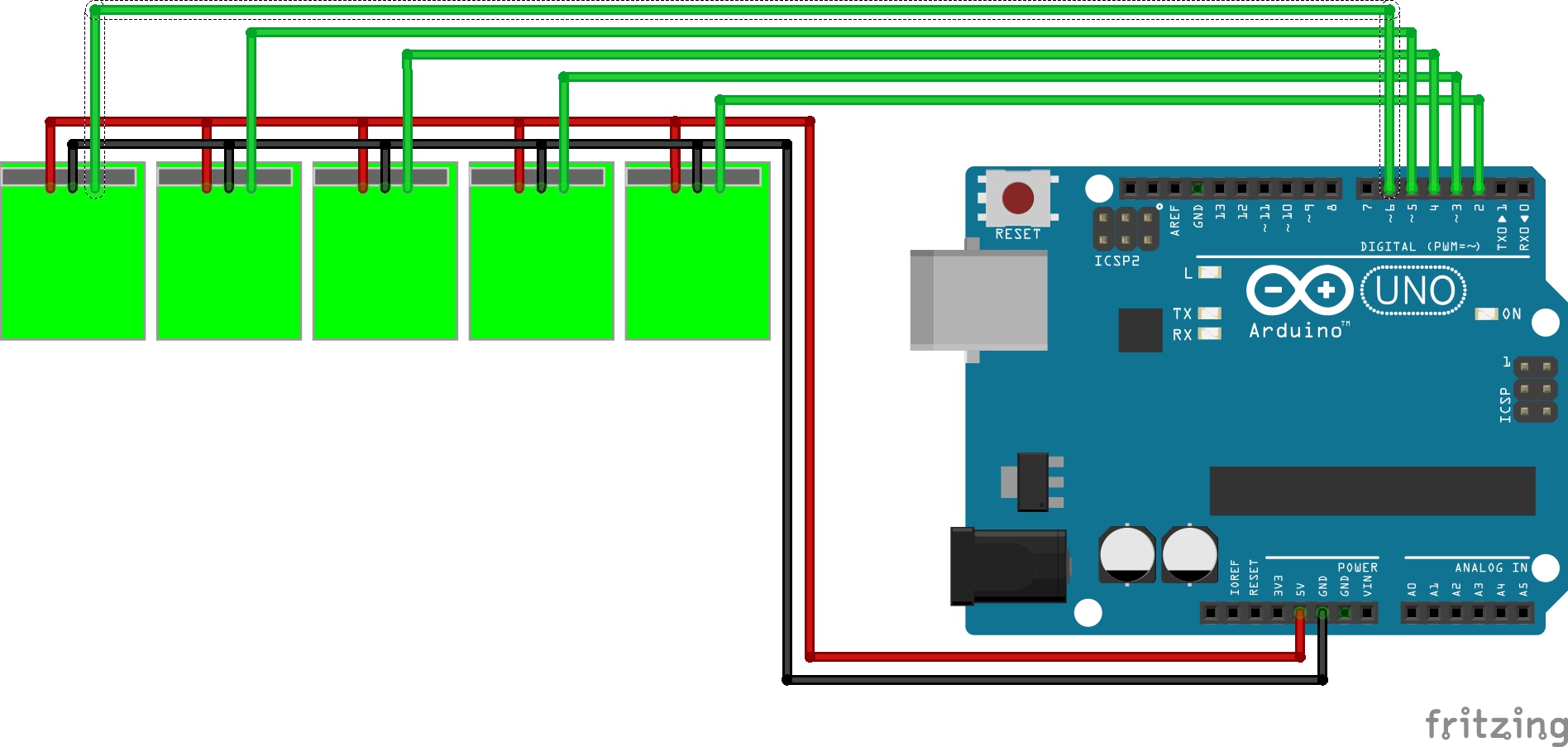 6.터치버튼 5개를 연결해서 개별적으로 신호를 시리얼플로터에 출력하시오!