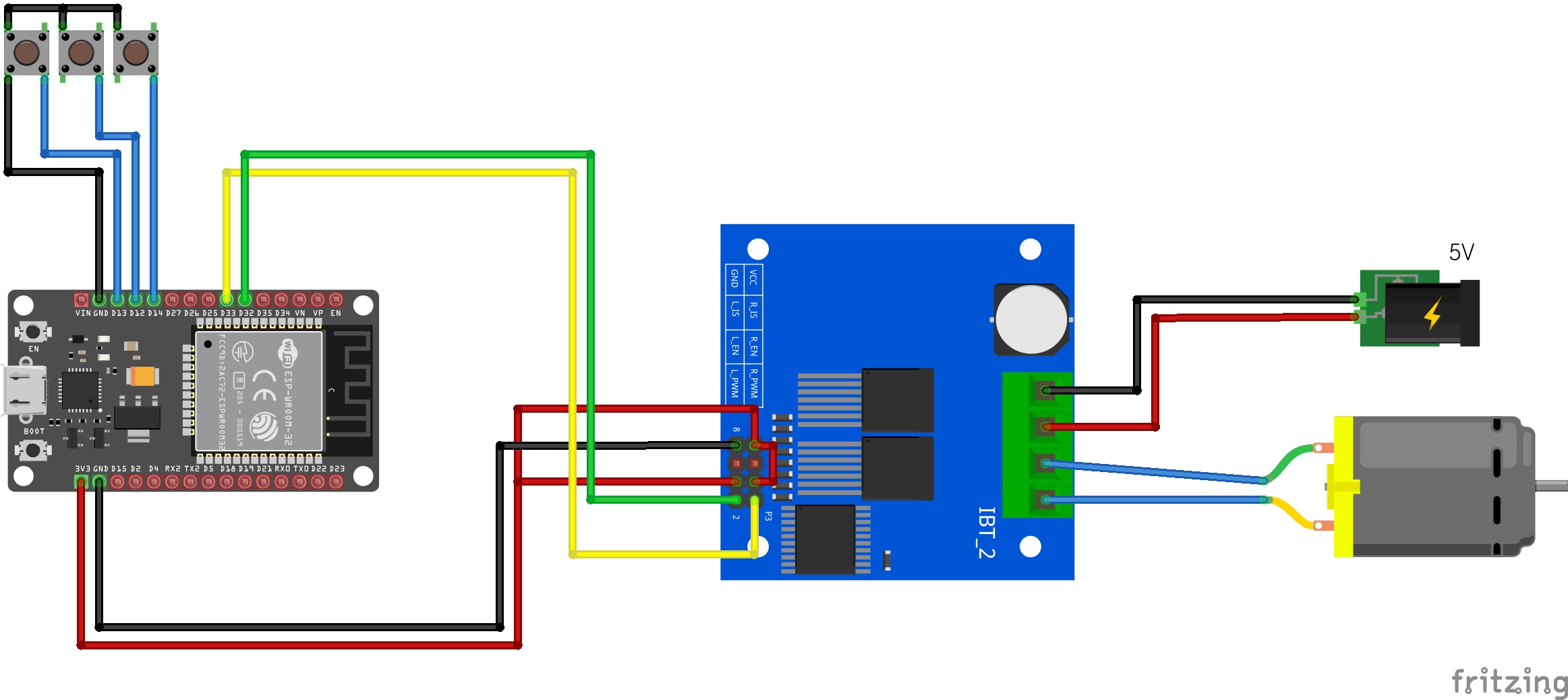 1.ESP32보드에 BTS7960을 연결하고 2초간 정회전, 2초간 멈춤, 2초간 역회전, 2초간 멈춤을 무한반복 하도록 하시오!(정역제어)