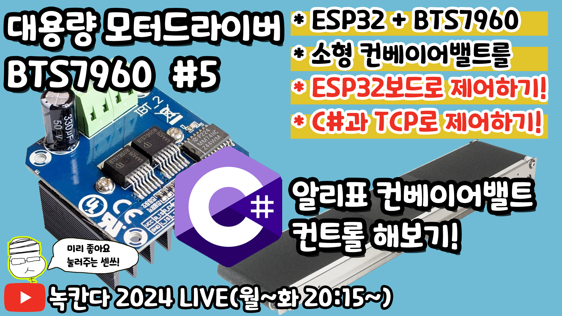 [아두이노#587] ESP32와 BTS7960를 소형컨베이어밸트에 연결하고 C#과 TCP통신으로 제어하기!(녹칸다의 컨베이어밸트)