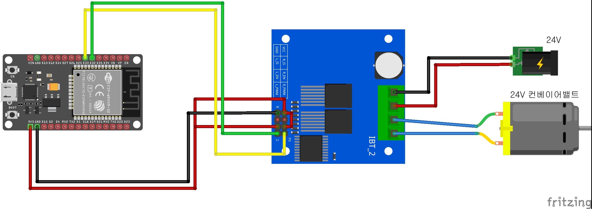 이번편에서는 ESP32에 대용량모터드라이버인 BTS7960을 연결해서 소형 컨베이어밸트를 제어가능하도록 한다!