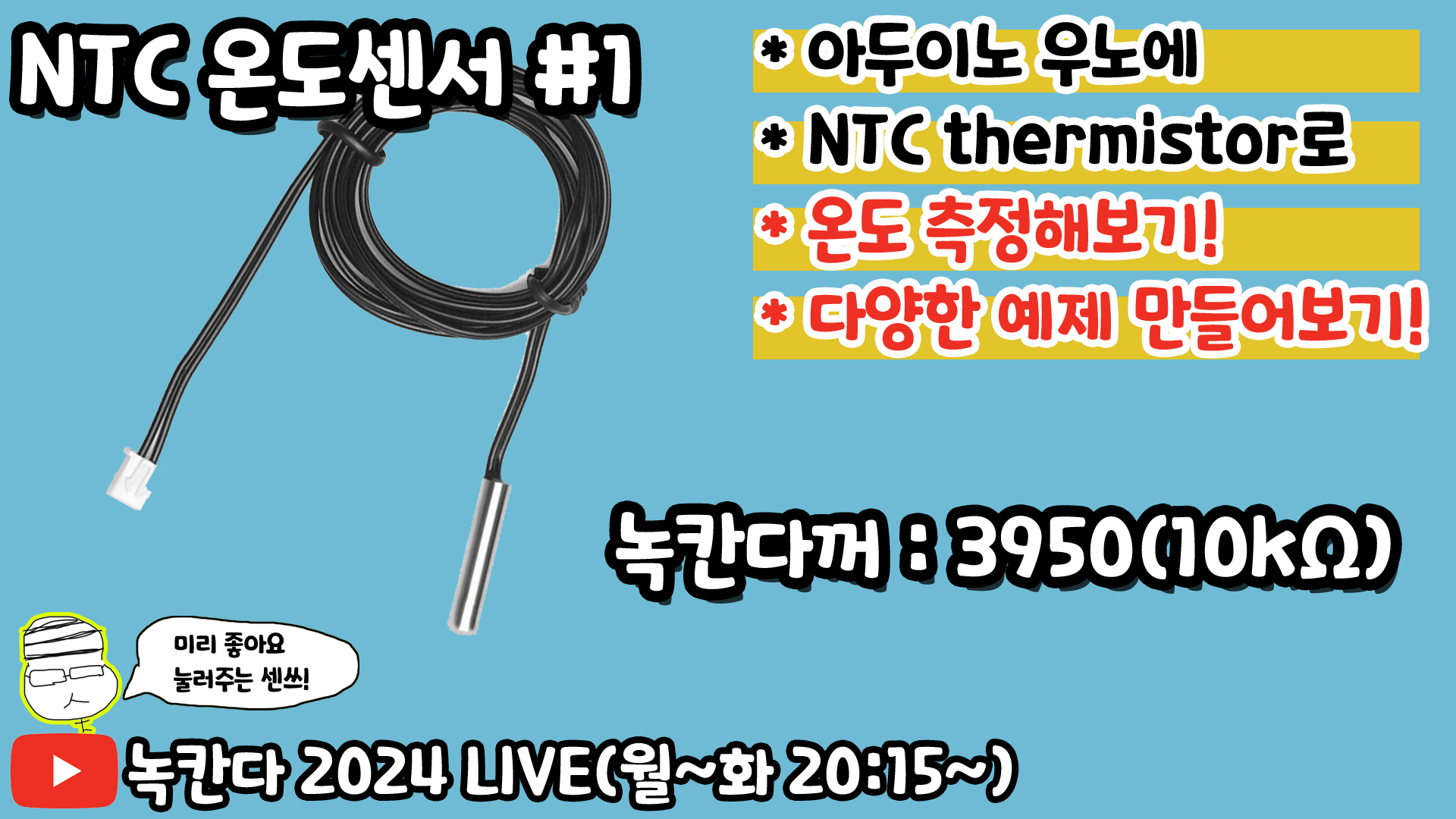 [아두이노#590] 아두이노에 NTC 서미스터(thermistor/3950/10kΩ) 온도센서를 이용해서 온도 측정해보기!(녹칸다의 아두이노)