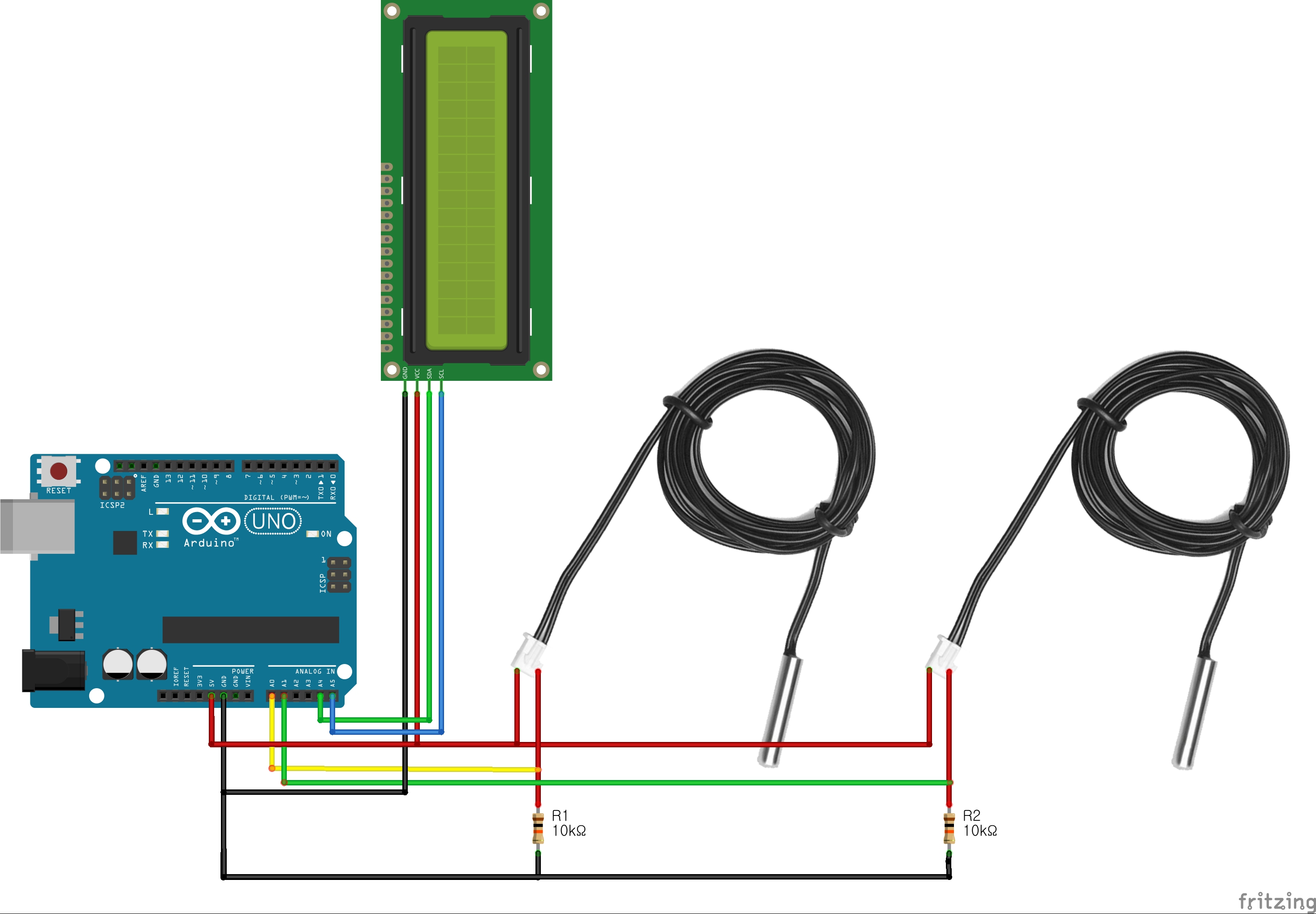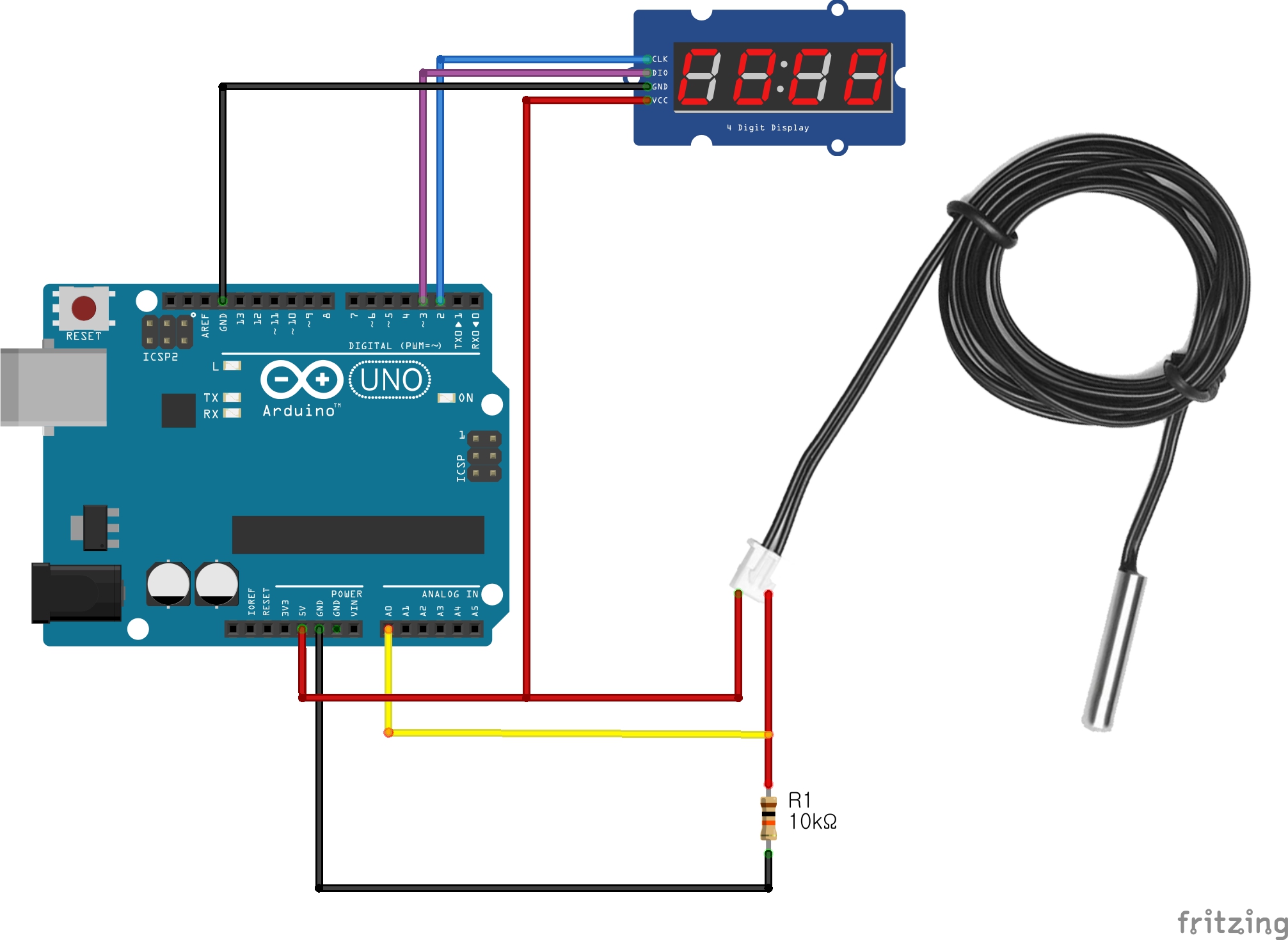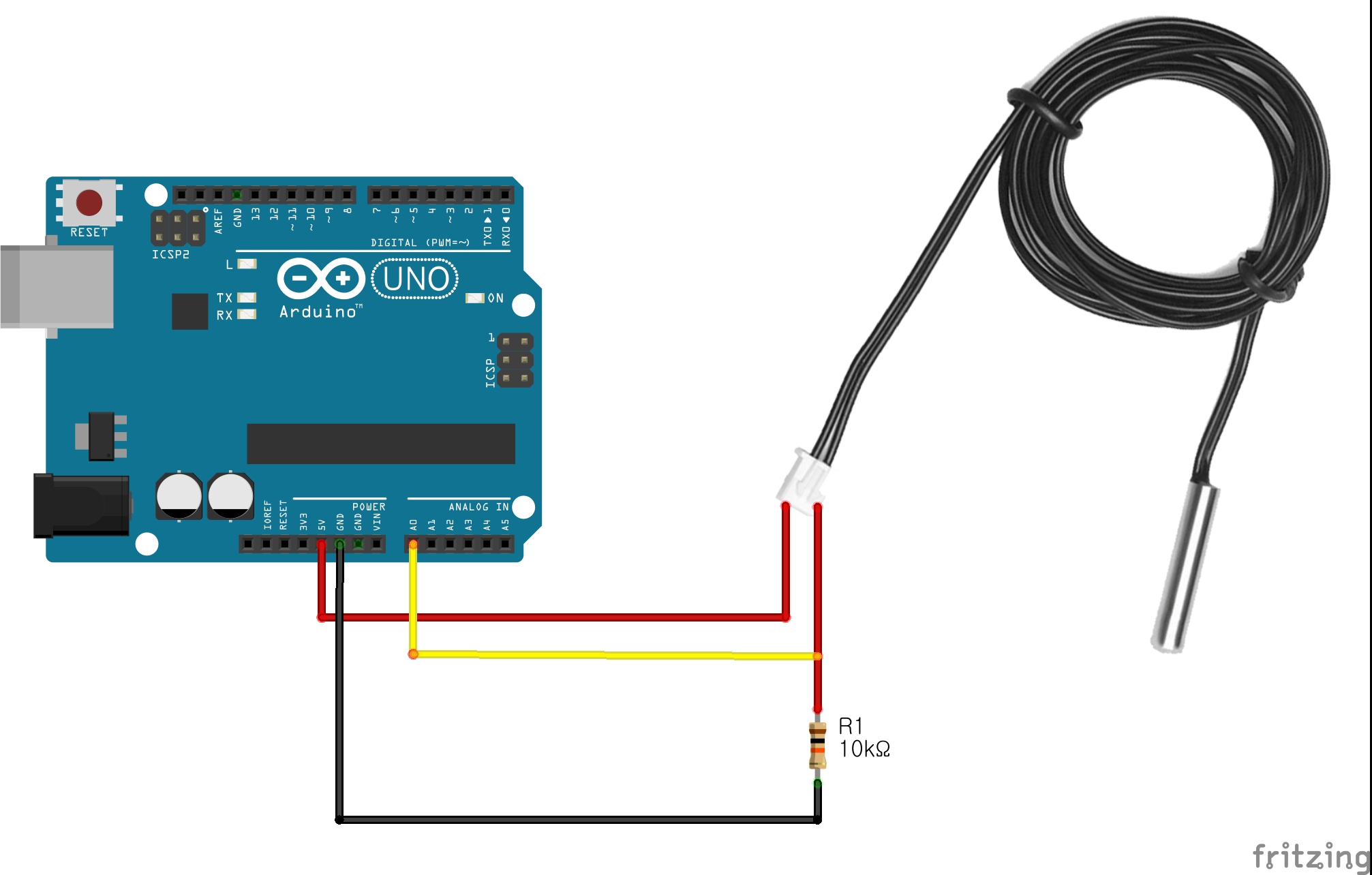 1.아두이노 우노에 NTC 서미스터를 고정저항 10K옴짜리와 같이 연결하고 아날로그 값을 측정한다음 온도값으로 바꾸는 절차를 보이시오!(기본예제)