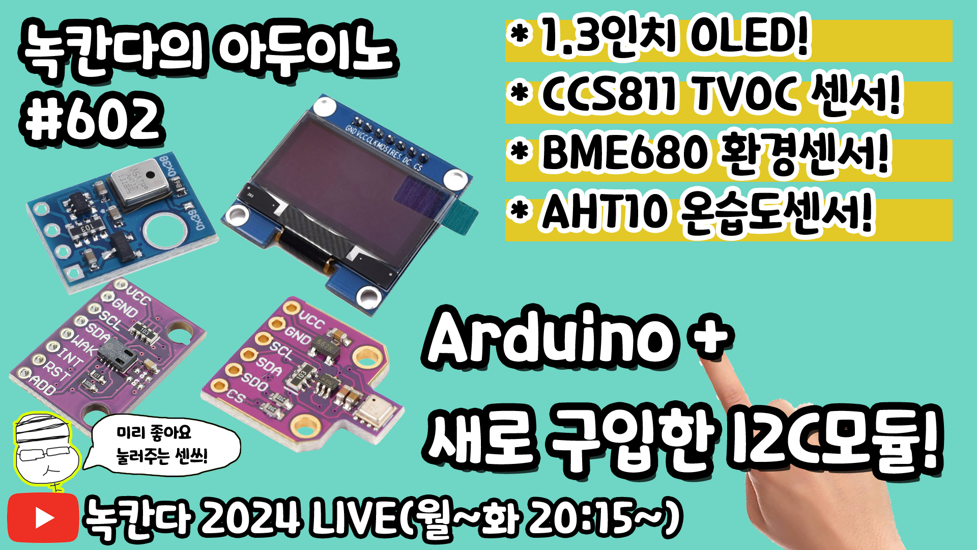 [아두이노#602] Arduino에 1.3인치 OLED(SH1106)과 새로구입한 I2C센서(ccs811,bme680,aht10) 사용해보기!(녹칸다의 아두이노 시즌2)