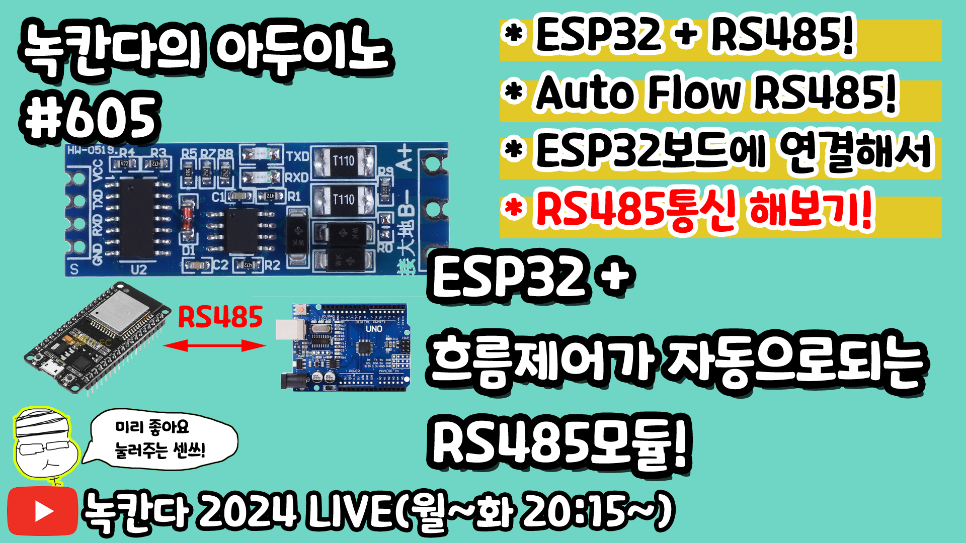 [아두이노#605] ESP32에 흐름제어가 자동으로되는 RS485모듈로 간단하게 modbus rtu프로토콜 구현해보기!(녹칸다의 아두이노 시즌2)