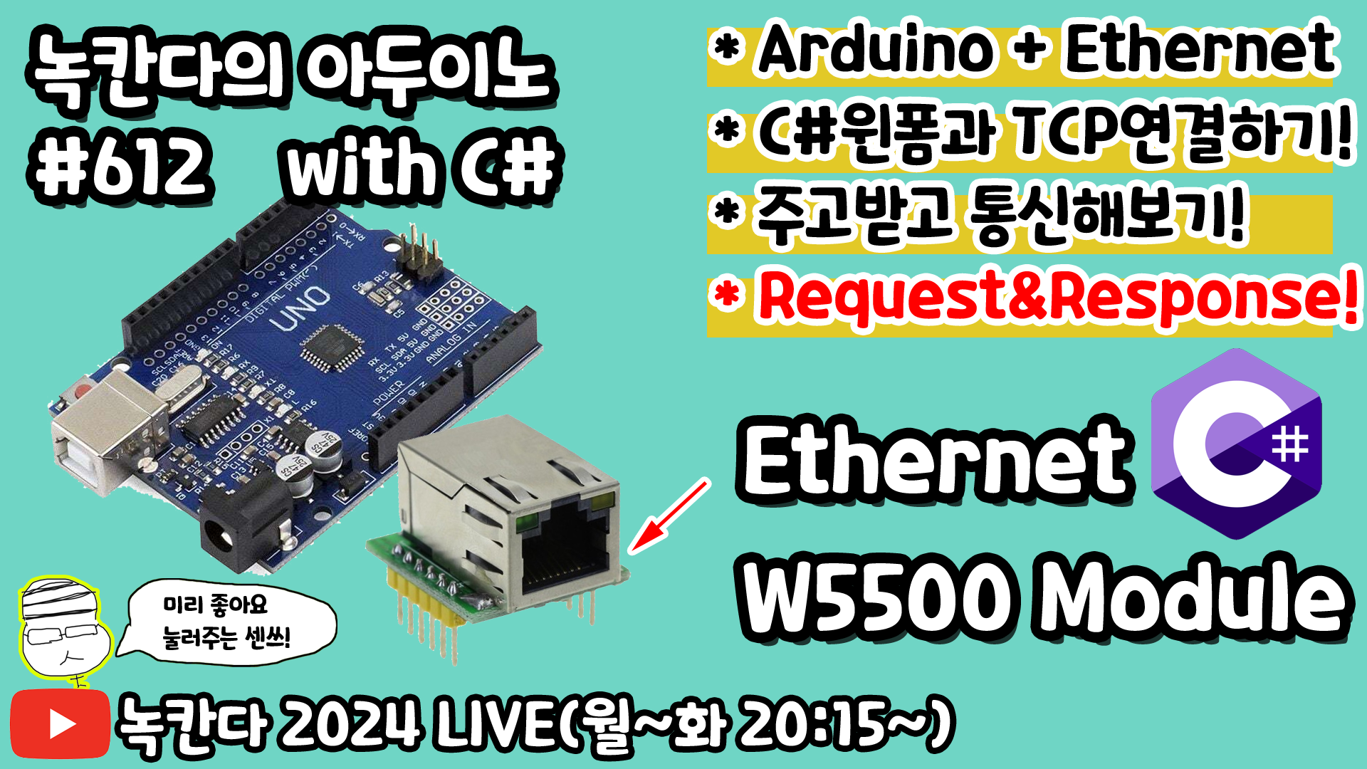 [아두이노#612] Arduino에 W5500을 연결해서 C#윈폼으로 Request & Response 방식으로 통신 해보기!(녹칸다의 아두이노 시즌2)